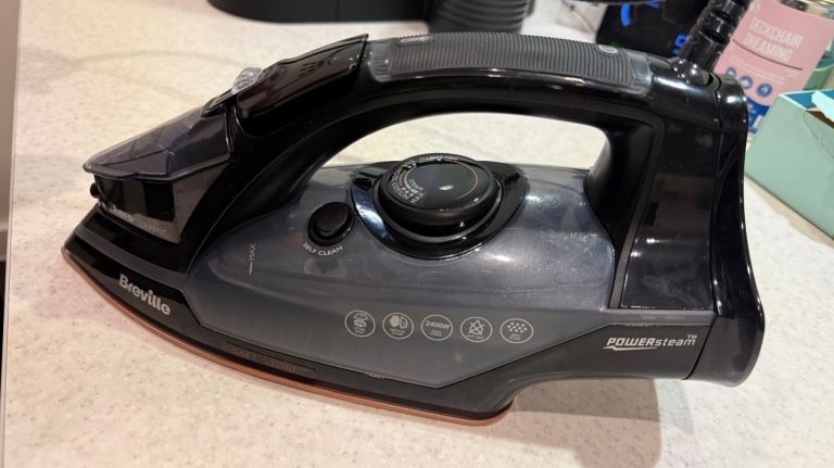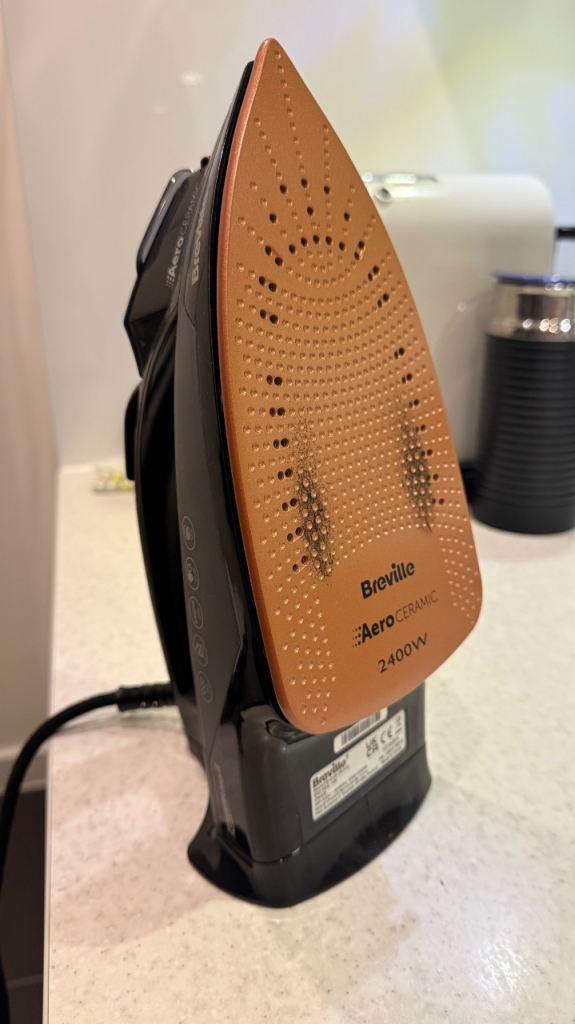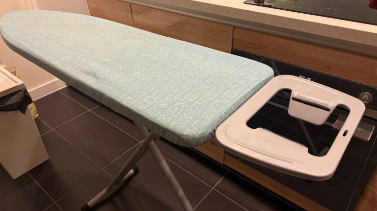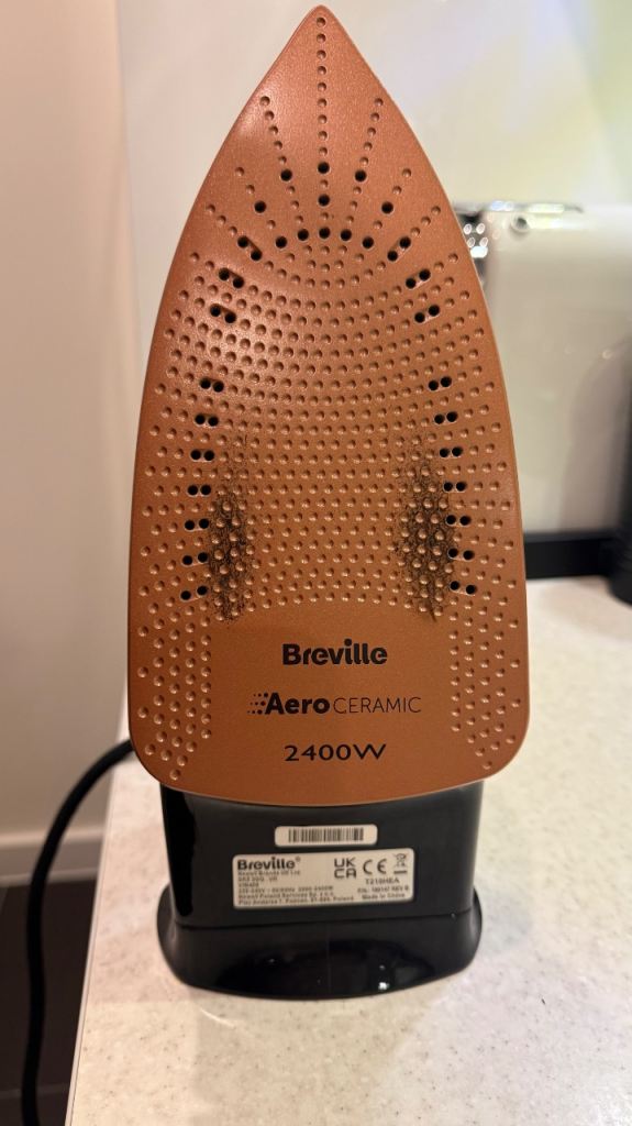 Selling a Breville Aero Ceramic 2400W steam iron and a standard ironing board. Both are used and show normal cosmetic wear from use, as shown in the photos. The iron stands upright on its base, and the board folds down for easy storage. Ideal as a budget set for a flat, spare room, or student place. £25 for both together, or £12 for the iron and £10 for the board.