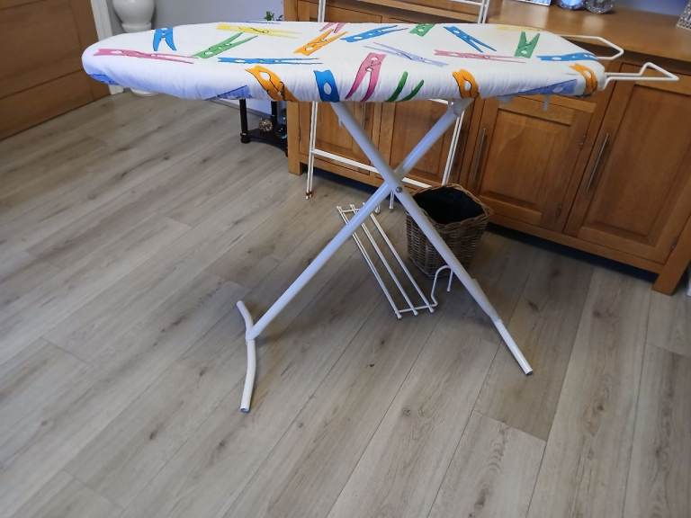 IRONING BOARD, BOARD 39'' LONG, 45'' INCLUDING IRON RACK.
