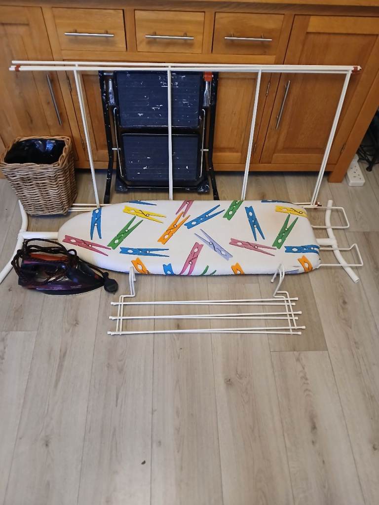 JOB LOT OF UTILITY ITEMS INC. IRON AND IRONING BOARD. COULD DELIVER.