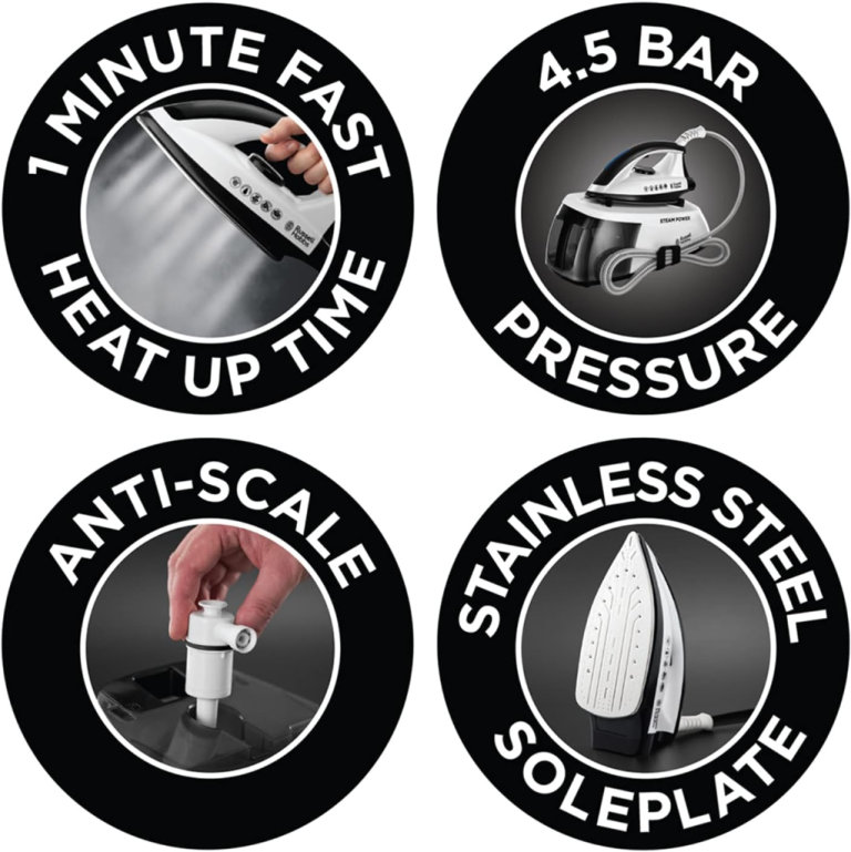 Russell Hobbs 24420 Steam Generator Power Iron which powers through creases with ease, this steamer features a generous 4.5 bar pressure which gives ultimate steam performance. With a temperature ready light for added convenience, this steam generator by Russell Hobbs includes a 1.9 metre power cord, cord and hose storage and is supplied with a one year guarantee. This steam power steam generator offers 2400W power output with a generous 1.3 litre removable water tank capacity with a 60 second heat up time.