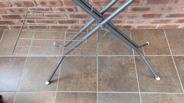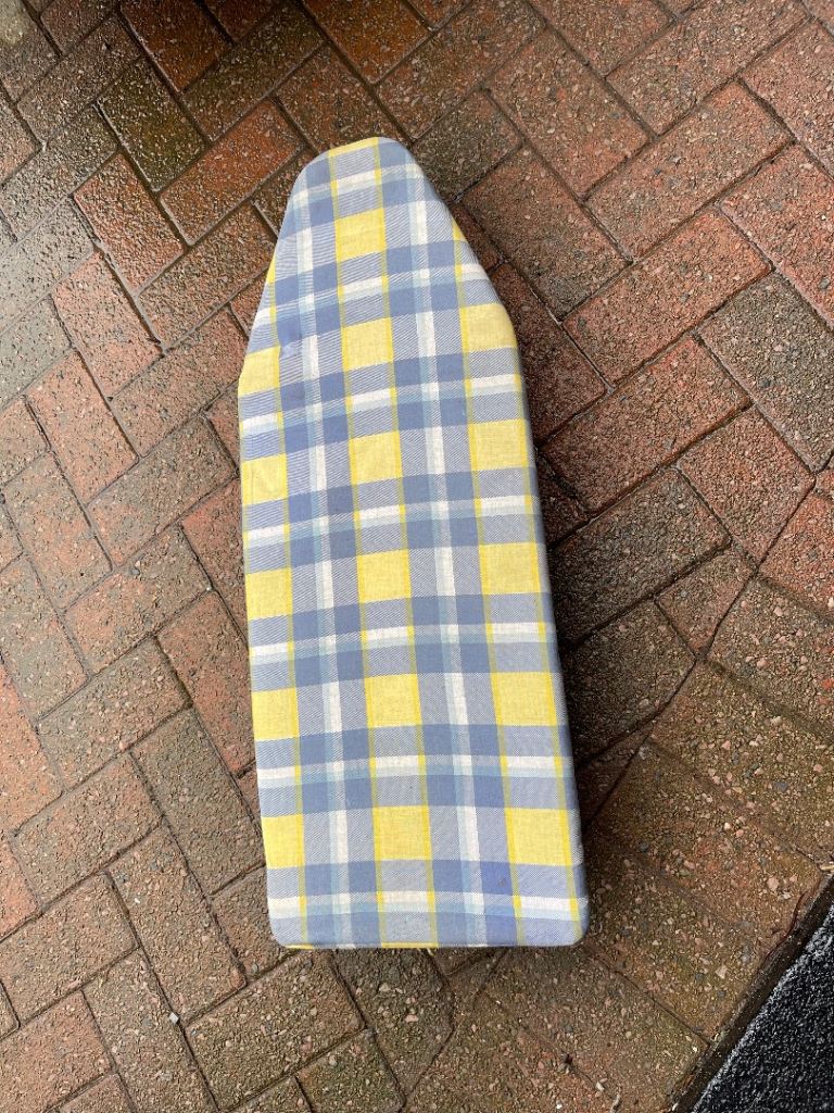 Solid steel ironing board, it's a good quality design, it does have scratches and some signs of age, and wear and tear