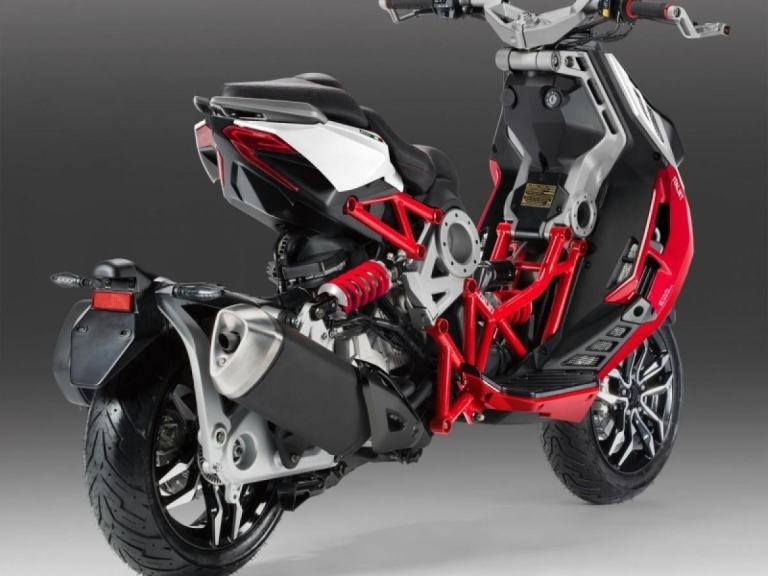 The Dragster is the result of innovation, ambition, and passion. The goal was to deliver the most technologically advanced scooter possible, pushing the limit of design and incorporating precise detail and high-quality finishing. The result is an Urban Superbike that features an Aerospace alloy single-sided Independent Steering System (I.S.S.), a Trellis frame with Aluminium plates, Brembo brakes, and the full legal limit power output allowed on a 125cc engine.