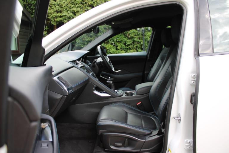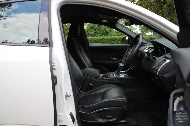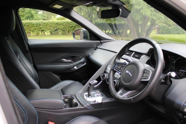 We are pleased to offer this well cared for, privately owned E Pace R-Dynamic automatic in fuji white with black full leather and full service history. Specification includes touch screen sat nav, dab radio, bluetooth, apple car play, air conditioning, rear view camera, parking sensors front and rear, heated electric seats, heated windscreen, heated washer jets, lane departure warning, ambient lighting, traffic sign recognition/speed limiter, cruise control, exterior black pack and 20'' venom alloy wheels in black. 2 x keys present. Call or visit our website for a finance quote (subject to status) No admin fees are charged. We specialise in privately owned high specification vehicles and endeavour to buy the best examples of the marques we sell. Old fashioned service with up to date product knowledge. 30 years of successful selling please check out our 5 Star reviews and buy with confidence.