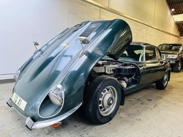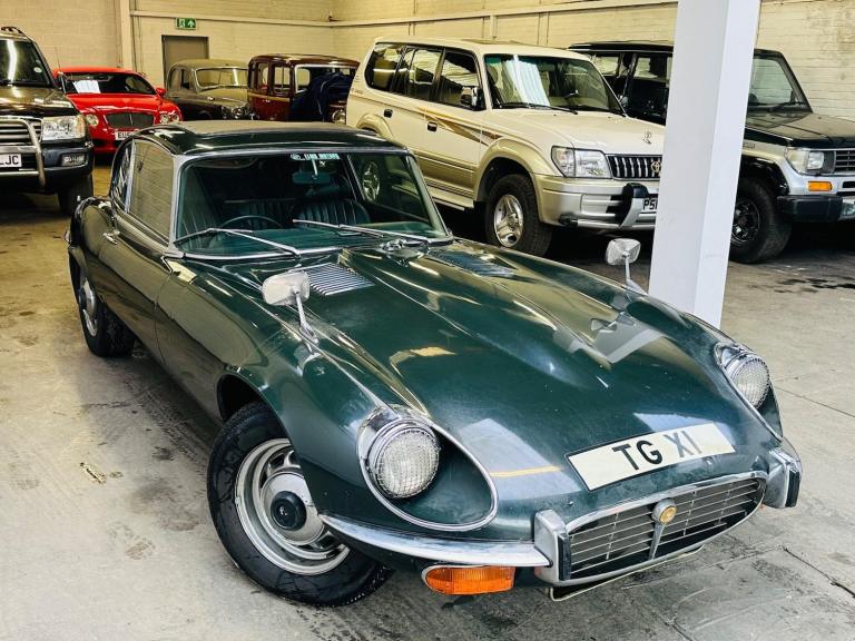 WE PROUDLY PRESENT THIS EXTREMELY RARE STUNNING JAGUAR E-TYPE V12 COUPE 2 + 2, WITH A VERY RARE WEBASTO SLIDING SUNROOF, MANUAL GEARBOX, SUPPLIED NEW IN UK IN 1973, WITH MOTS DATING BACK TO 1980, SERVICE RECORDS DATING BACK TO 1978, ORIGINAL JAGUAR SERVICE PASSPORT BOOK (SERVICE STAMPS FROM 1973 TILL 1976), +++CURRENT OWNER OWNED THIS VEHICLE SINCE 1983, WAS DRIVEN UP UNTIL 1990 AND THEN PARKED UP IN A SEALED CONTAINER IN HIS FACTORY, WE THEN REMOVED THE VEHICLE THIS HIS CONTAINER AND TRANSPORTED IT TO OUR STORAGE FACILITY (DOCUMENTED WITH PICTURES FOR WHEN THE VEHICLE WENT INTO STORAGE AND WHEN WE REMOVED IT)++++ PRESENTED IN BRITISH RACING GREEN, WE HAVE BILLS FOR AROUND £4,500 FOR RECENT INSPECTION AND TO HAVE THE VEHICLE STARTED, THE JAGUAR DOES START AFTER A FEW ATTEMPTS AND DRIVE, CLUTCH WILL REQUIRE ATTENTION, BODYWORK WILL ALSO REQUIRE ATTENTION, THIS IS NOT A PRISTINE EXAMPLE, PLEASE CARE IN MIND IT IS A RUNNING RESTORATION, INTERIOR IS IN GOOD CONDITION FOR ITS AGE, BLACK LEATHER AND CARPET IN GOOD ORDER. +++VIEWING WELCOME+++ PRIVATE REGISTRATION NOT INCLUDED IN SALE+++ STARTS AND DRIVES+++ALL ELECTRICS WORKS AS IT SHOULD+++THIS E-TYPE NOT YOUR RESTORED IMMACULATE EXAMPLE+++