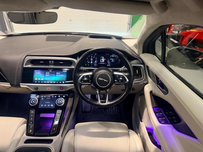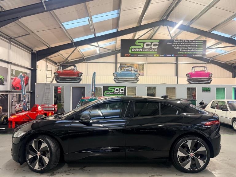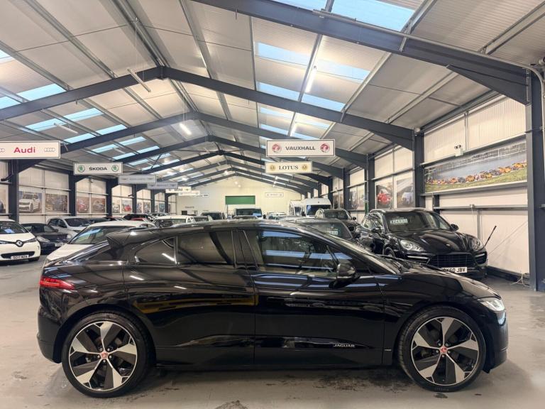 With an MOT valid until March 2027 and a clear vehicle history check, this 2019 Jaguar I-PACE 400 First Edition offers excellent peace of mind. As an all electric, Four Wheel Drive model, it combines advanced technology with impressive performance. This First Edition trim benefits from a substantial 90 kWh battery, providing a maximum range of 298 miles when new. It also features a clear vehicle history and was last serviced on 2026 03 04, ensuring it is well maintained. Notable features include striking 22 inch Gloss Black alloy wheels with diamond turned finish and carbon inserts, a premium Meridian Surround Sound System, Bluetooth connectivity, and a Head Up Display for enhanced convenience.The Jaguar I-PACE 400 First Edition stands out with its exceptional acceleration, achieving 0 to 60mph in just 4.5 seconds, demonstrating its dynamic capabilities. This performance, combined with its electric drivetrain, offers a refined and responsive driving experience. Charging is convenient, with a full charge at home taking approximately 12 hours and 36 minutes using a 7kW charger, while rapid public charging can achieve 80% capacity in as little as 50 minutes. Furthermore, the I-PACE boasts a large boot space, making it a practical choice for everyday use and longer journeys.