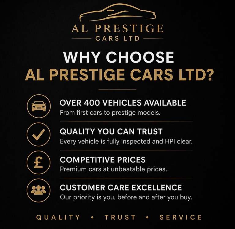 Welcome to Al Prestige Cars Ltd. If you are looking for a second hand vehicle at unbeatable prices, then look no further than AL Prestige. Sited in one of the most scenic locations based in Southampton, Al Prestige Cars offer you quality low mileage used cars at affordable prices. We are proud to offer you a first class customer service and very competitive pricing, so please browse our showroom. Do call in and see us, most cars come with a • Comprehensive parts and labour warranty. • HPI checked • Mechanically checked