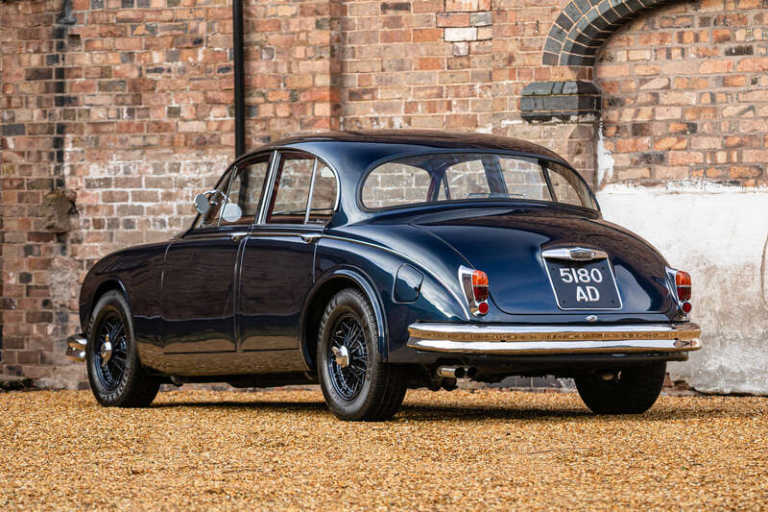 This lot will be auctioned via Iconic Auctioneers, The Iconic Sale at Race Retro 2026 - Collectors' Cars on Saturday the 21st of February, Stoneleigh Park, Stoneleigh Rd, Coventry, CV8 2LG. , An exceptionally well-sorted and tastefully uprated example of Jaguar’s revered MK2 saloon, this unique car was first registered in August 1960 and presents today with a thoughtfully engineered specification that combines classic elegance with discreet performance enhancements. Powered by a substantially uprated 4.2-litre XK engine and four-speed all-synchro manual gearbox with overdrive, it offers an engaging and surprisingly modern driving experience whilst remaining faithful to the spirit of the original car.Originally delivered as a 2.4-litre automatic from Jaguar’s Browns Lane factory, this MK2 has been the subject of a comprehensive and well-documented transformation that elevates it far beyond its standard specification. At the heart of the car lies a period-correct but extensively modified 4.2-litre XK engine, benefitting from a lightened and balanced flywheel, fast road camshaft, and straight-port cylinder head. Twin 2” HD8 SU carburettors with open trumpets ensure ample air intake, while a stainless steel six-branch manifold handles the exhaust with efficiency and style. The engine bay also features modern enhancements including a 123 electronic ignition system, upgraded alloy radiator and a subtly louvered bonnet to aid cooling – each selected to improve reliability without compromising the car’s period appearance.Complementing the powertrain is a range of mechanical upgrades designed to bring handling and braking in line with the performance on offer. These include larger brakes, uprated anti-roll bar, a limited-slip differential, and GAZ shock absorbers. Steering is transformed by a Vicarage rack and pinion setup with EZ electric assistance, vastly improving feedback and precision over the original system. The car sits on body-coloured 6x15 outer-laced competition wire wheels shod with grippy Pirelli P4000 205/70 R15 tyres, offering both visual appeal and enhanced roadholding.Cosmetically, the MK2 retains a traditional silhouette with a more purposeful demeanour. Finished in a rich shade of Jaguar Indigo Blue – a modern interpretation that suits the shape beautifully – the car appears largely standard at a glance, with only subtle cues hinting at its capabilities. The interior is equally inviting, with lightly patinated red hide, superb walnut veneer dashboard and door tops, and attention to period detail throughout.On the road, this MK2 delivers an experience far beyond what might be expected from a 1960s saloon. The upgraded engine provides ample torque across the rev range and the manual gearbox with overdrive offers long-legged cruising ability. Ride comfort remains excellent, while the improved suspension, brakes and steering transform the car into a truly communicative and confidence-inspiring driver’s machine.Whether described as a ‘restomod’ or, perhaps more aptly, an ‘evolution’, this Jaguar MK2 stands out as a rare and highly desirable proposition. It offers the charm and craftsmanship of a classic British saloon, subtly reimagined with thoughtful enhancements that bring it to life for modern roads. With exceptional build quality, considered upgrades and a refined aesthetic, it's an ideal choice for the enthusiast seeking both performance and presence in a truly individual motor car.