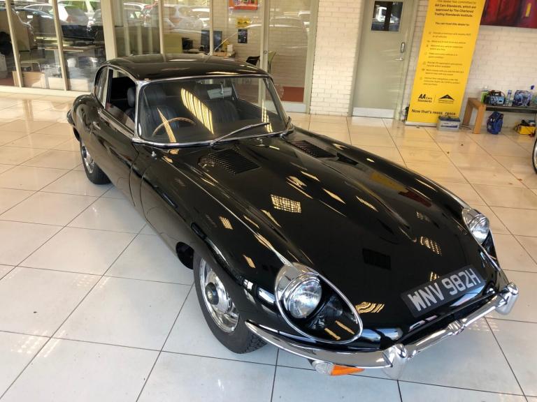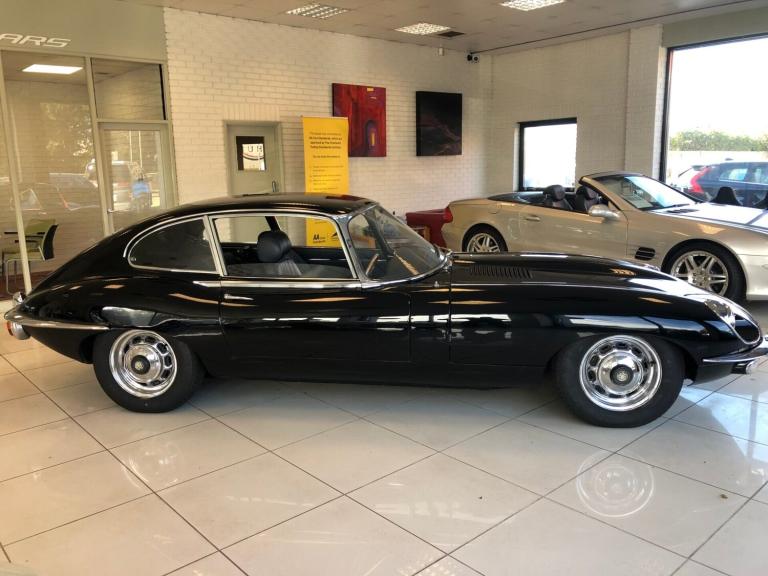 Here we have an iconic piece of British motoring history, in this Jaguar E-Type series 2 2+2 desirable manual made for the UK market. Finished in black with dark blue leather, timeless curves and powered by the legendary 4.2 straight six engine sitting on the original steel chrome wheels. Manufactured in 1969 and first registered in March 1970. The car is showing 95022 miles. Accompanying the car is its valuable heritage certificate and a huge history file dating back to 1980 detailing its life of cherished ownership. The car was orginally supplied to Henlys of London through one of their retail dealers being Alec Norman (Garages) Ltd who were based in Sun, Street Potton in Bedfordshire who were Jaguar and Daimler main dealers. They sold this E-Type to the local Foundry, Clark and Son in March 1970. Since then we have a comprehensive file with various works and MOT's and it has covered only 18000 miles in the last 44 years, one of the previous owners has listed all the old mot's and mileages covered in the year. The current owner has owned the car for the last 9 years, purchased from Arun Jaguar, ( a local Jaguar specialist) and in that time he covered the grand total of 1762 Miles!! Hence it has now come to market for someone else to enjoy and cherish. As the founder of Jaguar Sir William Lyons said Jaguars have grace,pace and space. If you are looking for a very well priced classic this could be the car for you. It is currently in our Showroom in Chichester. Please call on 01243 781111 if you would like to make a viewing appointment