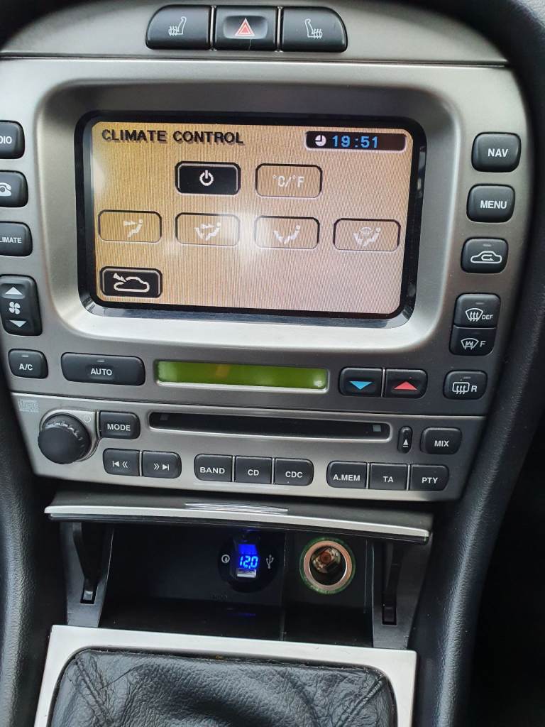 Very high spec including; Heated Full leather interior with full electric adjustable drivers seat and 60/40 split folding rear seats, 18" Jaguar Proteus Split rim style Alloy Wheels (and matching spare), Real Carbon fibre spoiler and dashboard, Sat Nav, DAB (Increadibly rare option which requires the even rarer gateway module) & FM Radio with CD, 6 CD Changer & Bluetooth, Power folding electric mirrors. It also has an Android Auto/Apple Carplay system included.