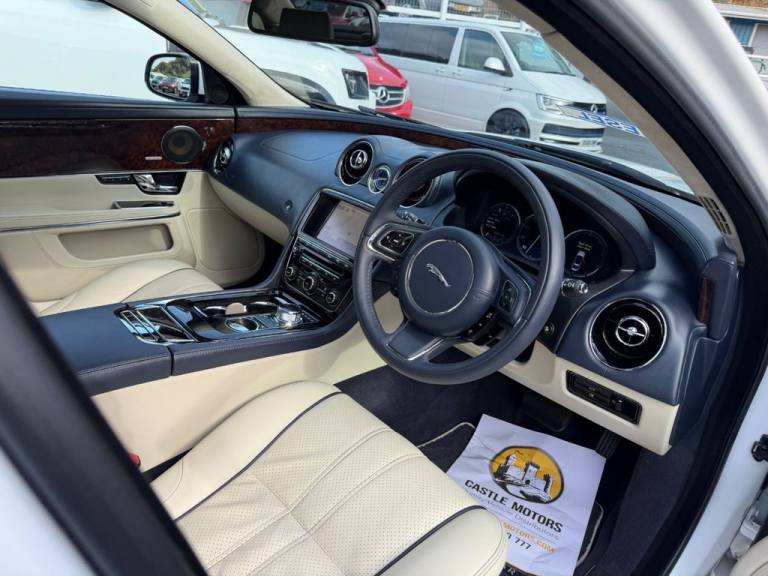 Diesel 275PS. Exceptional vehicle very well cared for. White with DuoTone Blue and Ivory Perforated leather with Suede headlining, huge spec including opening panoramic glass sunroof, 20 inch twin spoke Black wheels, Bowers &Wilkins Premium HiFi, extended wood inlays, reversing camera, Jaguar fully digital dashboard display, climate heated and cooled electric memory adjustable seats with massage, Dynamic Mode, digital dashboard, Navigation, DAB & much more. Only 57,350 miles covered, one owner for most of its life, recently serviced & stunning vehicle serviced All of our vehicles are ready for same day drive away. CASTLE MOTORS purpose-built showroom & forecourt has a wide range of cars for sale, including some of the worlds most prestigious automobiles. Founded in 1972, we are open 7 days a week. All of our vehicles are presented to the very highest standards possible having gone through our own comprehensive multi-stage preparation. Supplied finance figures are only a guide. Every effort has been made to ensure the accuracy of the above info but errors can occur please check with our sales team. .18in Meru Alloy Wheels, 19in Aleutian Alloy Wheels, 19in Toba Alloy Wheels, 20in Kasuga Alloy Wheels, 3Spoke Leather Multifunction Steering Wheel, Carbon fibre veneer finisher, Cruise Control, Exterior badge deletion, Front Ashtray & cigar Lighter, Gloss Burr Walnut veneer, Gloss figured Ebony veneer, Gloss Rich Oak veneer, Illuminated Front stowage tray, Satin american Walnut veneer, Satin elm veneer, Suede Premium headlining