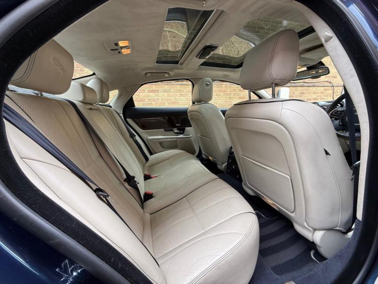 My Jaguar XJ is a very special car - An early example of an X351 Jaguar - The last ever XJ series - So the final incarnation of a car which has been Jaguars flagship model for generations. I have had this car professionally ceramic coated, so that the new owner has a modern classic that is easy to keep clean and has a shine that will be even better than new. There is barely any wear and the car drives like new, with smooth power delivery, and an even smoother ride which are synonymous with the Jaguar brand. Unlike a lot of executive cars, the Jag feels special. You get a sense of occasion in this car that is lacking in its rivals. The diesel powerplant is extremely refined - Even when cold it is muted by the well insulated cabin. The interior is a masterpiece with a suede headlining and opening panoramic roof which floods the interior with natural light. Everything in this car is fully electric including the large leather seats which are finished in light grey perforated leather, are electrically heated and cooled and even have a massage function for the ultimate in automotive luxury. An electric steering column glides upwards when the ignition is off to allow easier access and the leather and wood steering wheel is heated for additional comfort. - The attention to detail is superb high quality leather stitching to the large wood paneling on the dashboard and door cards. Despite the car having a mammoth amount of electrical goodies its interior manages to look classy and uncluttered. It's a mix of high-tech and tradition make it the perfect place to unwind and escape the stresses of the outside world.