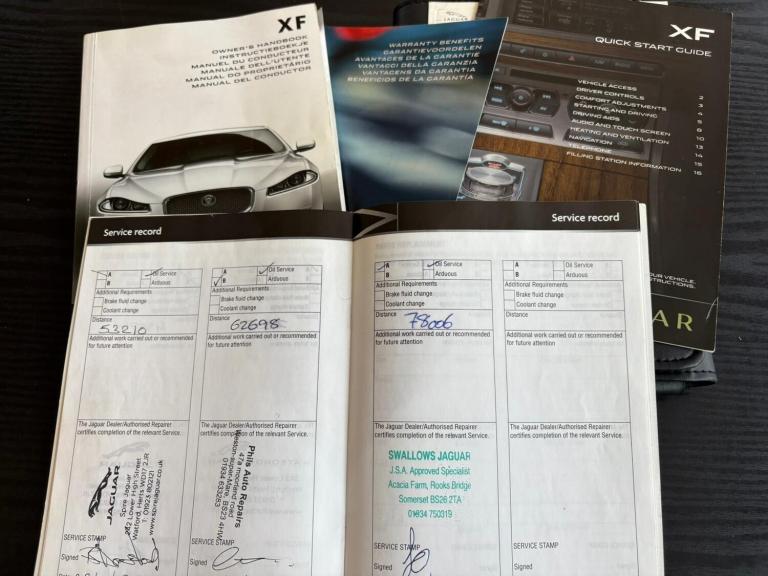 Service History, 7 Service Stamps in Service Book, This elegant 2012 Jaguar XF 2.2d Premium Luxury 4dr Auto is a sophisticated Saloon equipped with a powerful Diesel engine and has covered 111000 miles. With a MOT expiry date of 06/09/2026, this sleek vehicle offers 5 seats and 4 doors, making it perfect for family outings or business trips. Boasting a 7"" colour screen, Bluetooth telephone connectivity, a navigation system with HDD mapping, RDS/TMC + DVD player, and a rear parking sensor, this car provides both style and practicality. It comes with a history of only 2 previous registered keeper(s), ensuring its good condition and reliability. Experience the ultimate in luxury and performance with this stunning Jaguar XF. We try to provide as many images and as much information as possible for all our stock but please feel free to contact us if you require further information. We can also offer UK MAINLAND DELIVERY on all of our vehicles, please ask for details, 7"" colour screen Bluetooth telephone connectivity Driver information centre Navigation system with HDD mapping RDS/TMC + DVD player Rear parking sensor Service interval indicator Servotronic PAS Trip computer with dual function Auxiliary input socket Bluetooth audio streaming DAB digital radio module Media interface Steering wheel mounted audio/cruise controls Approach lamps Auto dimming rear view mirror Automatic headlights Bi-Xenon headlights with LED day running lights Body colour bumpers Bright window surrounds Chrome grille Electric adjustable heated door mirrors Electric folding and auto dimming door mirrors Electric front/rear windows with one touch/auto up/down Headlight washers Heated front windscreen and timer Heated rear window with timer Rain sensor windscreen wipers 12V socket in rear of vehicle 2 X front 12v power sockets 3 rear seat head restraints 3 spoke leather steering wheel 60/40 asymmetric split folding rear seats Auxiliary heater Carpet mats Coat hooks Drivers footrest Dual zone climate control Folding rear centre armest Footwell lights Front armrest Front centre console storage box Front seat and rear pockets Interior mood lighting Isofix child seat preparation Jaguar sense JaguarDrive selector Reach/rake electric adjustable steering column + entry/exit tilt away Softgrain leather instrument panel and door top rolls Steering wheel gearshift paddles Sunvisors with illuminated vanity mirrors Twin front cupholders Twin rear cupholders ABS+EBA Anti-whiplash front headrests Brake pad warning light Cornering brake control Driver/Front Passenger airbags DSC - Dynamic Stability Control Electronic parking brake Front/rear seatbelt pre-tensioners Side airbags Side curtain airbags Three 3 point rear seatbelts Alarm/immobiliser Deadlocks Drive away door locking Keyless entry system Keyless Start Remote central locking Warranty Sat-Nav
