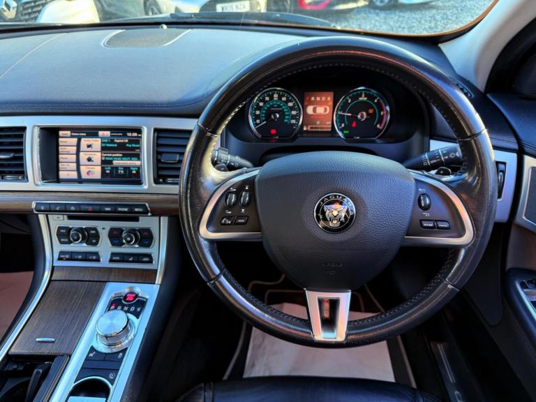 only driven a genuine 55,000 miles, 1 Owner from new, service history 4 services (3) services carried out by jaguar main dealer, recent service just carried out at 55,562 miles, mot December 2026, 2 keys, black leather interior, Aluminium dash fascia trim, mahogany wood trim on door cards and centre console, front heated seats, reverse camera, front & rear parking sensors, multi-function steering wheel, paddle shift gear change, Satellite Navigation, 17in Ursa Alloy Wheels, Cruise Control, Automatic Speed Limiter, 7in Colour Touch Screen Display, DAB Radio-bluetooth-usb-aux, Emergency Brake Assist, Electronic Brake-Force Distribution, front & rear cup holders, electric windows x4, electric folding side mirrors, dual zone automatic climate control, automatic Xenon headlights with LED signature lights and daytime running lights, Rear Parking Aid with Touch Screen Visual Indicator, Chrome Grille with Chrome Surround, rear isofix seats,