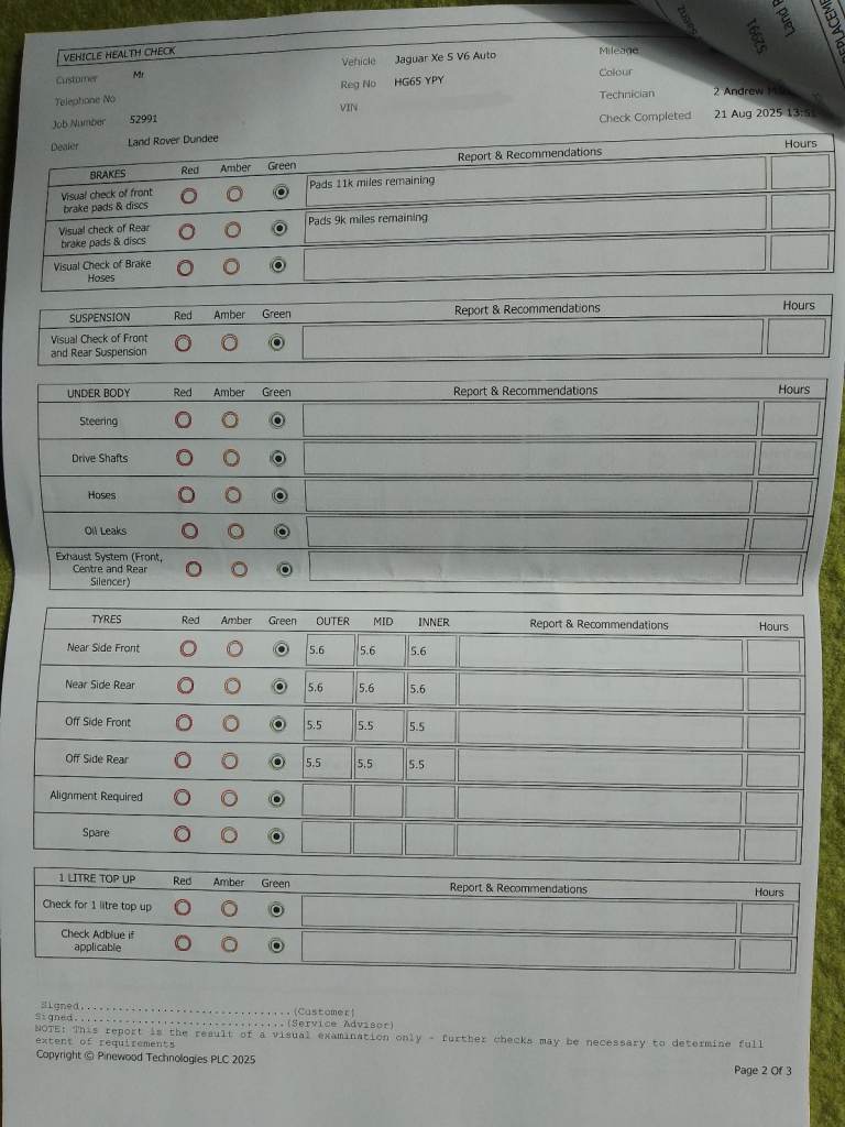 Always well looked after, recently a sensor replaced by Jaguar garage (got invoice) and full check carried out. Dual Exhaust Tips. All brakes and discs replaced at £800 cost, 2700 miles done since.