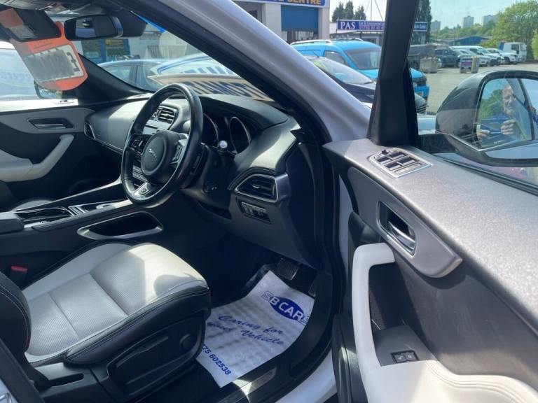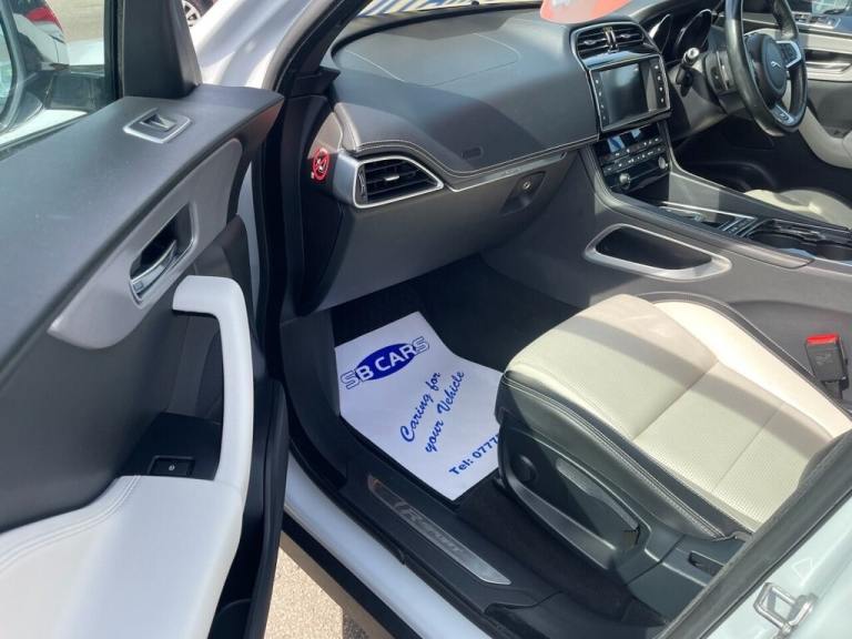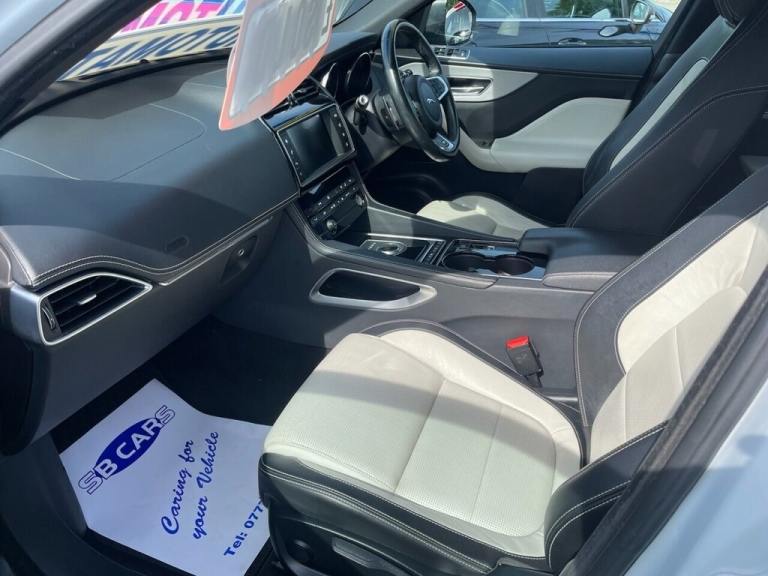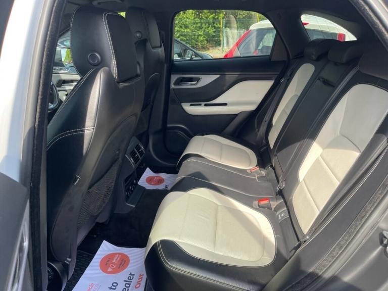 BLACK & CREAM LEATHER SEATS & INTERIOR: SAT NAV, TOUCH SCREEN MECIA DISPLAY:.12V Power Socket - Front, 12V Power Socket - Rear - Luggage Compartment, 12V Power Socket - Row Two, 19in Alloy Wheels -Bionic Twin 5-Spoke - Grey Diamond Turned Finish, 2-Zone Climate Control, 3 Month Trial Data Plan, 3-Flash Lane Change Indicators, 40-20-40 Split Fold Rear Seat, 80 Watt, ABS - Anti-locking Braking System, AEB - Autonomous Emergency Braking, Airbags - Driver, Airbags - Front Side, Airbags - Full Length Side Curtain, Airbags - Passenger, AM-FM Radio, Analogue Dials with 5in Full Colour TFT Display, Approach Illumination - Automatic via Remote, ASPC - All Surface Progress Control, Auto-Dimming Interior Rear View Mirror, Automatic Headlight On, Aux-In - 3.5mm, Bluetooth Audio Streaming, Bluetooth Telephone Connectivity, Bootlid - Powertrain Badging - 20d AWD, Bootlid Jaguar Leaper and Wordmarque, Bootlid Nameplate Badge, Brake Pad Wear Indicator, Bright Metallic Sports Pedals, Bumper Blade - Satin Chrome, Bumper Outer Grille Bezel and Mesh - Grained Black, Capacitive Touchscreen, Carpet Mats - Jet, Centre Console - Side Stowage, Centre Console - Storage Surround Finishers - Satin Chrome, Centre Lower Valence - Grained Black, Cruise Control with Adaptive Speed Limiter, DAB Radio + and DMB, Daytime Running Lights - LED, Door Claddings - Body Coloured with Grained Black Finisher - R-Sport, Door Mirrors - Body Coloured, Door Mirrors - Electric Adjustment-Heated with Blacked Side Repeaters, Door Trim - Luxtec, Dynamic Route Guidance, Dynamic Stability Control - DSC, Dynamic Volume Control, EBA - Emergency Brake Assist, ECO Data, Electric Windows - Front and Rear with One-Touch Open-Close and Anti-Trap, EPB - Electric Parking Brake, Etched Aluminium Veneer, Fold Flat 6 Degrees - Row 2 Seats, Follow Me Home Lighting, Front Armrest with Storage Compartment, Front Fog Lights, Front Parking Aid, Glove Compartment Lockable, Glovebox Finisher with Jaguar Wordmark, Hazard Lights Under Heavy Braking, Head Restraint - Rear Centre, Headlight Power Wash, Headlights - Self Leveling, Headlights - Xenon, Headlining - Morzine - Jet, Headrest - Manual Adjustable, Heat Insulating Glass - Green All-round, Heated Front Seats, Hill Launch Assist, InControl - Remote Esstentials, InControl Apps, InControl Protect, InControl Remote Premium, InControl Touch Navigation - SD, InControl WiFi, Instrument Panel Topper - Cuir Grain Wrapped, Instrument Panel Upper Fascia - Jet, Interior Front Door Handles with Separate Locking Switches, Interior Mood Lighting, iPod Integration,