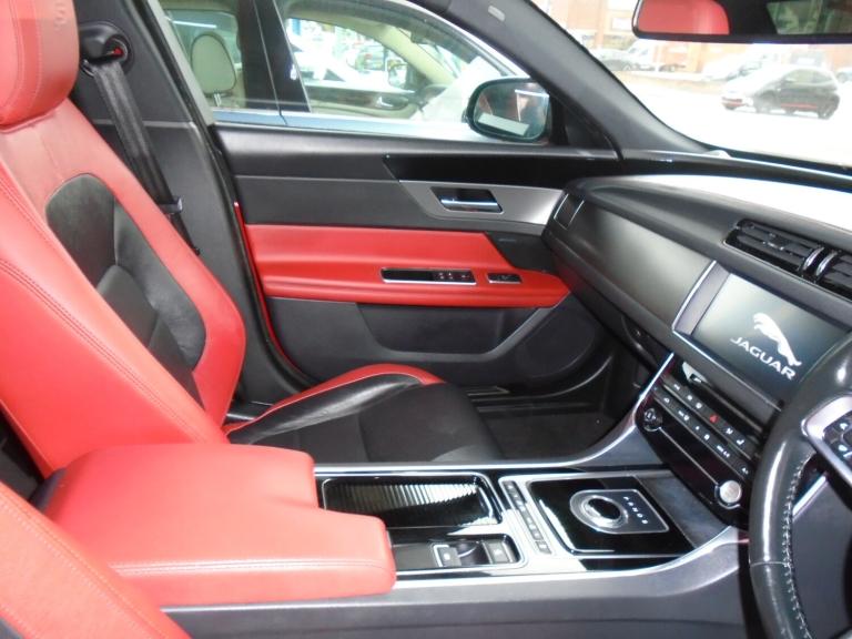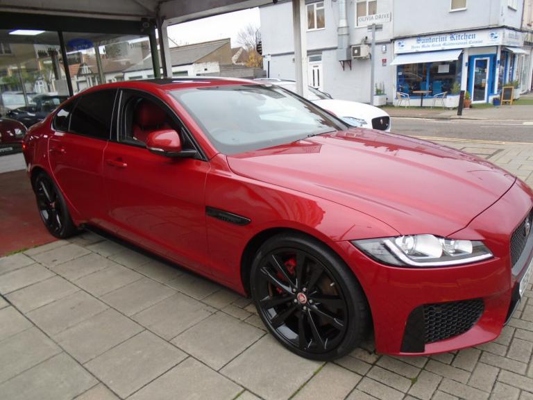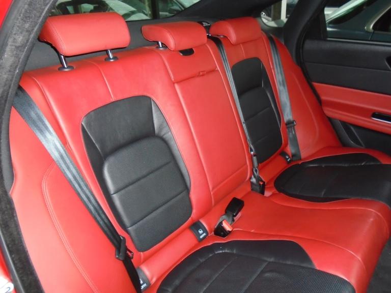 Jaguar XF X260 Model 300S 3.0 V6TDI..Finished in Frienze red with contrasting Mulberry and warm charcoal sport seats, a really High spec example of the sport saloon,so fast and powerful with unbeliveable fuel economy, just such good value, twin TFT screens, heated steering wheel,glass panoramic roof, 20"" Venom gloss black alloys, Meridian sound,keyless go,lane assist,auto xenons,LED daytime running lamps, front and rear PDC, Multi setting driver modes to personalise driver settings, heated seats, sport extended body trim with boot spoiler, elec column adj,power fold heated mirrors,black pack,a really fast ULEZ compliant car sporting,practical and economical in the best colour too,