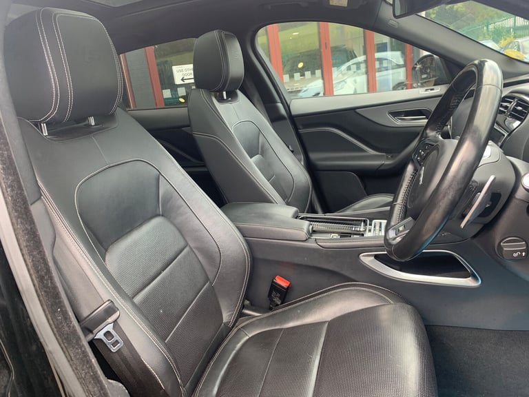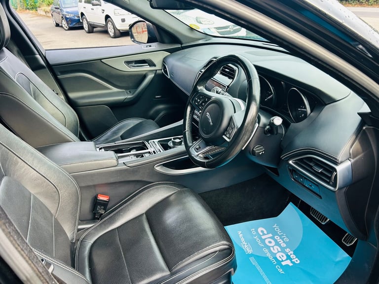 This 2017 Jaguar F-Pace 3.0 D300 V6 S SUV with 51,000 miles and service history on the clock is a powerful yet efficient diesel vehicle that boasts 5 doors and 5 seats, making it perfect for families or those wanting extra space. Will be supplied with 12 months Mot this SUV offers peace of mind and is also ULEZ compliant, making it suitable for driving in low emission zones. The car comes with 10-Way Electric Front Seats, 2-Zone Climate Control, 3-Flash Lane Change Indicators, and 40-20-40 Split Fold Rear Seat for added comfort and convenience. The ambient interior lighting adds a touch of luxury to the already impressive features. With a Euro 6 engine and 300 ps, this Jaguar F-Pace is a reliable and stylish choice for those in need of a capable and well-equipped SUV. - Will be supplied with 12 months Mot - 2 keys - Good service history - Part Exchange Welcome - Extended Warranties Available - Finance Available, Features Include: , 10-way electric front seats, 2-zone climate control, 3-flash lane change indicators, 40-20-40 split fold rear seat, ambient interior lighting, auto-dimming interior rear view mirror, bright metal pedals, centre console - side stowage, centre console - storage surround finishers - satin chrome, centre console with armrest, door trim - luxtec, ebony morzine headlining, front headrests - s branded embossing, heated front seats, hook in loadspace, interior front door handles with separate locking switches, loadbay - luggage tie downs, lockable glovebox with jaguar script finisher, luxtec wrapped instrument panel topper, manually adjustable steering column, meshed aluminium trim finisher, metal treadplates with s branding, overhead lighting console, passive front head restraints, power boot lid, power tailgate, premium carpet mats, protect for warranty period, push button start, rain sensing windscreen wipers, rear air vents, rear armrest with twin cupholders, reversible boot floor - carpet-rubber, s branded soft grain leather steering wheel, satin chrome touchscreen surround, seats - sports, second row centre headrest, steering wheel - multi-function, steering wheel - satin chrome paddles, twin front cupholders with cover, valet mode, variable intermittent wipers, 20in alloy wheels - 5 spoke style 5035 with grey diamond turned finish, auto-dimming - power fold - heated door mirrors with approach lights, door mirrors - body coloured, dual tailpipes with 84mm finishers, electric windows - front and rear with one-touch