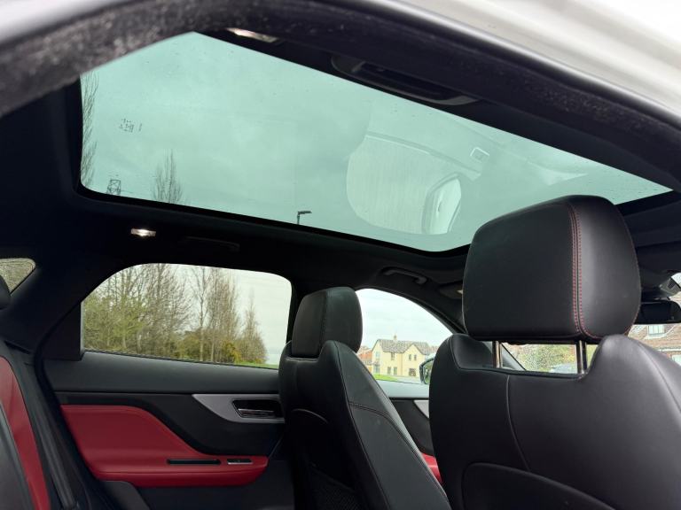 2017 STUNNING JAGUAR F-PACE 2.0 DIESEL 240 BHP R - SPORT EDITION WITH SPORT PACK *** 4X4 *** ALL TERRAIN SUSPENSION PACK *** 8 SPEED AUTO & FINISHED IN GLEAMING GLOSS FUJI WHITE WITH AND A VERY CONTRASTING FULL BLACK / RED TWO-TONE NAPPA LEATHER INTERIOR WITH HEATED SEATS FRONT *****