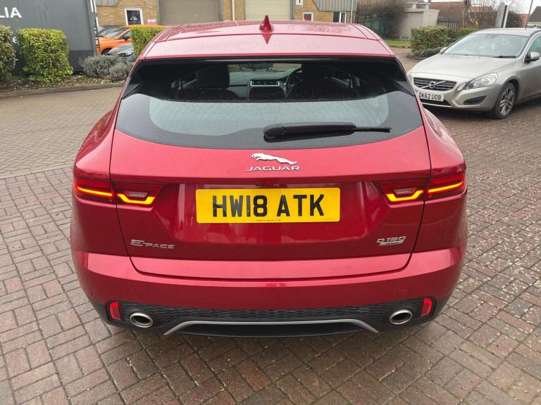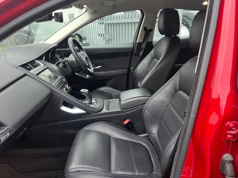 IN MET. RED WITH FULL BLACK LEATHER, 74,800 MILES WITH SERVICE HISTORY & 2 x KEYS, SAT NAV, This 2018 Jaguar E PACE D180 S is presented with a clear vehicle history check, offering peace of mind for its next owner. This stylish compact SUV features a 2.0 litre diesel engine paired with a smooth Four Wheel Drive system, meeting Euro 6 emissions standards. The S trim level includes convenient features such as 2 Zone Climate Control, Bluetooth connectivity for seamless audio and calls, and automatic headlights that adjust to lighting conditions. For easier manoeuvring, it is equipped with a rear view camera and a Park Pack which includes both front and rear parking sensors. The Jaguar E PACE D180 S offers a compelling blend of performance and practicality. Its acceleration from 0 to 60 miles per hour in just 8.6 seconds demonstrates its responsive nature, making it a capable performer on the road. Furthermore, the generous boot space ensures that this vehicle is well suited for everyday tasks and longer journeys alike, providing ample room for luggage or shopping. These attributes, combined with its sophisticated Jaguar styling and the comprehensive S trim features, position this E PACE as a distinguished choice within its class. Features Include: , 10-way electric front seats, 10in touch pro, 18in alloy wheels - 9 spoke style 9008, 2-zone climate control, 3-flash lane change indicators, 360 degree parking aid, 5in display with instrument panel, 60-40 split fold rear seat, abs - anti-locking braking system, aspc - all surface progress control, airbags - front side, airbags - full length side window curtain, approach illumination, auto-dimming - power fold - heated door mirrors with approach lights, auto-dimming interior rear view mirror, automatic headlights, bluetooth connectivity, body coloured roof, cbc - cornering brake control, centre console cubby box, centre console with armrest, chrome side vents, connect pro pack, cruise control with speed limiter, customer configurable autolock, dab radio, driver condition monitor, dynamic stability control and traction control, dynamic volume control, eba - emergency brake assist, ebd - electronic brake-force distribution, ebl - emergency brake lights, eco driving style assistant, epas - electric power assisted steering, epb - electric parking brake, electric windows - front and rear with one-touch open-close and anti-trap, emergency braking, front airbags with passenger seat occupant detector, heated front