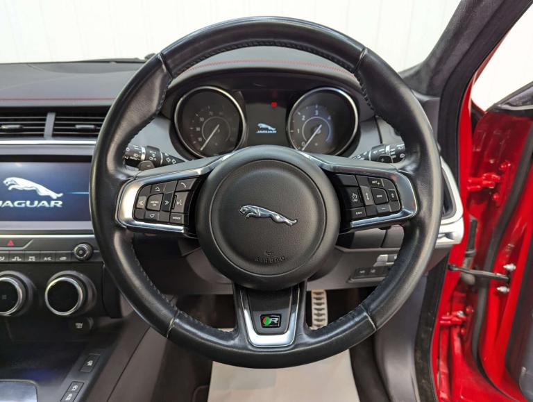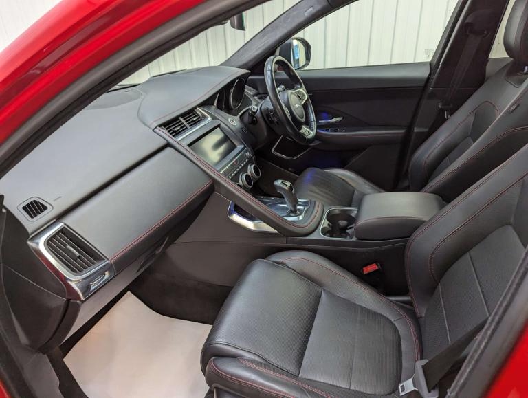 + FIRST EDITION PAN ROOF 20IN ALLOYS + SOURCE – This stunning Jaguar E-Pace First Edition D Auto AWD has been sourced from a car supermarket group, where it was taken in part exchange against a newer vehicle. OWNERSHIP – It has been well maintained by its three previous owners from new. SERVICE HISTORY – The vehicle is offered with service history and will be serviced and fully mechanically prepared by ourselves prior to sale. It will also be supplied to its next owner with a brand new 12 month MOT. PRESENTATION – Finished in eye-catching Caldera Red, this First Edition model has superb road presence and stands out from the crowd. It rides on impressive 20in 6 split-spoke alloy wheels in Satin Grey, perfectly complementing the exterior styling. The interior is beautifully appointed in Ebony Windsor leather with Flame Red contrast stitching and Ebony interior detailing, creating a premium and sporty cabin environment. The addition of a panoramic glass roof enhances the light and spacious feel inside. With just 32,000 miles, this is a truly stunning example presented in excellent condition throughout. ADDITIONAL INFORMATION – The vehicle is completely HPi clear, with no outstanding finance and not subject to any insurance loss or theft. The mileage is verified as genuine. The buyer will be supplied with the V5 registration document, service history, both keys, MOT certificate and a HPi clear certificate. All vehicles are supplied fully valeted prior to sale and with a nationwide warranty. Part exchange is very welcome and finance options are available – please call us today for a tailor-made quotation. PLEASE NOTE – To avoid any disappointment please call prior to arrival to ensure the vehicle you are interested in has not been reserved by another customer and is on site available for viewing. ABOUT US – We are a family owned, multi award winning car dealership with up to 200 quality used vehicles in stock. With up to 100 images per car, walk around videos, bespoke finance quotation tools and the ability to reserve vehicles too, head over to carquay.co.uk and get in touch with our team today. Take a moment to read over 1500 genuine 5 star reviews about our business and keep up to date with what's happening on our social media