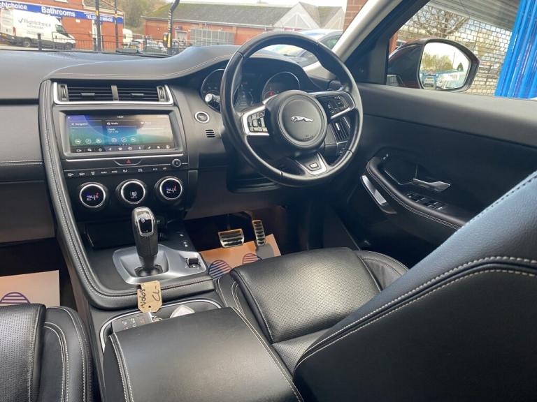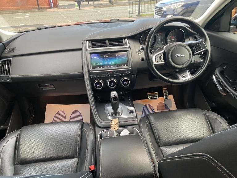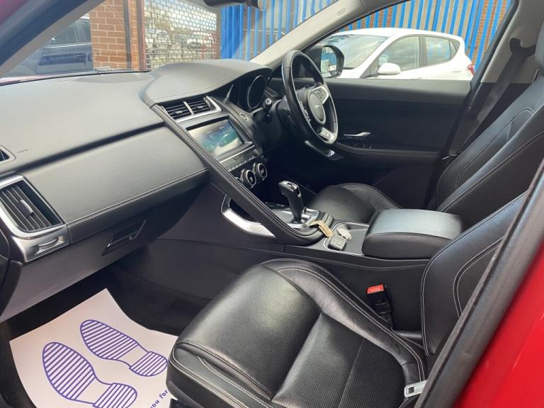 29000 miles. Warrington Jag Centre are very pleased to offer this absolutely stunning Jaguar E Pace R- Dynamic S Auto , Finished in Italian Racing Red , with Jet Leather seats , Only covered 29 000 miles , by 2 careful owners , Specification includes Navigation , Bluetooth , Power tailgate , 18 inch Alloys , cruise , Reverse Camera with parking aid front and rear , SOLD WITH 12 MONTHS MOT , PRE -DELIVERY INSPECTION .. As we are a small family company , We sometimes have to pop out to collect new stock / parts etc, and although we do try to man the site at all times , there are occasions when we are out collecting vehicles for sale. PLEASE CALL IN ADVANCE...SERVICE IF REQUIRED .... Adaptive steering, Cruise control, Exterior temperature display, Navigation system, Travel data recorder, Trip computer, Voice control for navigation system, Windscreen heating, Centre console media control touchpad, DVD, Digital radio, Front centre armrest, Front head restraints, Front interior 12V power outlet, OEM sound system, Radio, Rear headrests, Rear interior 12V power outlet, mp3 player, Body coloured bumpers, Fixed panoramic glass roof, Tailgate, Windscreen wash-nozzle heated, Alarm, Leather seat upholstery, Metallic Paint, Alloy wheels, Locking wheel nuts, Tyre repair kit.