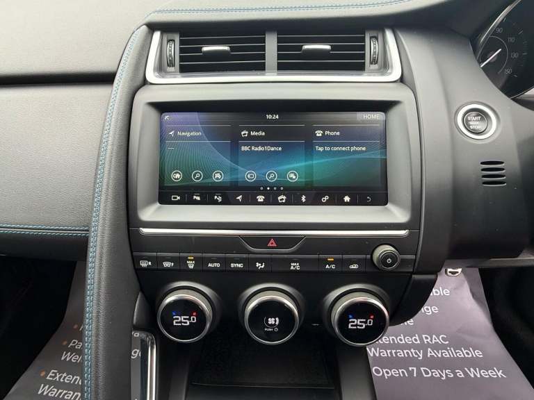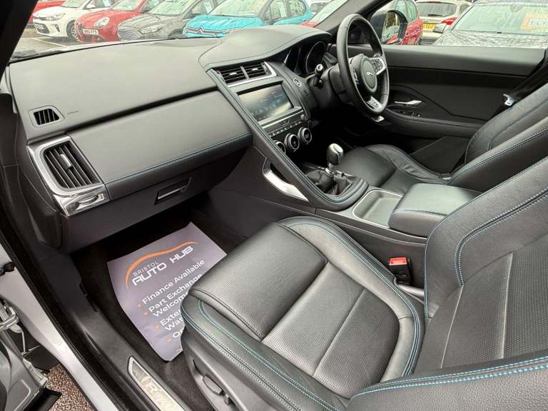 2018 Jaguar E-Pace R-Dynamic S D150 20 Diesel Manual 4x2 5 Door SUV In Silver With 87577 Miles ULEZ Compliant - No Clean Air Zone Charges Will Come With New 12 Month MOT Upon Purchase Service History - Last Service At 80164 Miles Very Economical - 642 MPG (Extra Urban) Road Tax - Only £195 Per Year 2 Former Keepers Boot Capacity - 425 Litres This Sought After Jaguar E-Pace Is In Excellent Condition Throughout Perfect For Those Seeking A Stylish And Reliable SUV With Great Fuel Economy And Modern Features Ideal For Both Daily City Driving And Long Journeys With Plenty Of Space For Passengers And LuggageThis Desirable High-Spec R-Dynamic S Model Comes With Extras Including Full Leather Interior Touch Pro Display With Navigation Pro System Apple Car Play & Android Auto DAB Radio Bluetooth Connectivity Cruise Control with Speed Limiter Reverse Camera With 360 Parking Aid Front & Rear Parking Sensors Cruise Control with Speed Limiter 10-Way Electric Front Seats Auto-Dimming - Power Fold - Heated Door Mirrors with Approach Lights 18in Alloy Wheels - 5 Spoke Style 5048 R-Dynamic Body Kit 2 x USB Ports 12v Power Socket Heated Front Windscreen Heated Rear Window Heated Washer Jets R-Dynamic Branded Leather Multi-Function Steering Wheel Air Conditioning With 2-Zone Climate Control LED Headlights with Signature Daytime Running Lights Traffic Sign Recognition Dynamic Volume Control ECO Driving Style Assistant Voice Control Electric Windows - Front and Rear with One-Touch Open-Close and Anti-Trap Tailgate Spoiler Twin Tailpipes with Finishers Automatic Headlights Approach Illumination 3-Flash Lane Change Indicators Auto-Dimming Interior Rear View Mirror Ebony Morzine Headlining Push Button Start Rain Sensing Windscreen Wipers EPAS - Electric Power Assisted Steering EBA - Emergency Brake Assist Hill Launch Assist Lane Keep Assist Rear ISOFIX Remote Control Central LockingAll Vehicles Are Fully Valeted With A 45 point inspection check undertaken Part Exchange & Test Drive Welcome Finance Available On All Cars - Come Direct For No Admin Fees & Competitive Prices - Good and Bad Credit Welcome - No Obligation Quote 3 - 36 Month Warranty Available Open 7 Days A WeekFor More Pictures and Info Please Visit [Website URL removed] specification is for a typical vehicle of this model and year when manufactured Every effort has been made to ensure the accuracy of the information provided however there may be differences to the specification of the actual vehicle in stock or the vehicle may have been modified Do not rely entirely on the listed specification and please check to confirm that any features which may influence your decision to buy are present and the actual specification of the vehicle meets your requirements and expectations