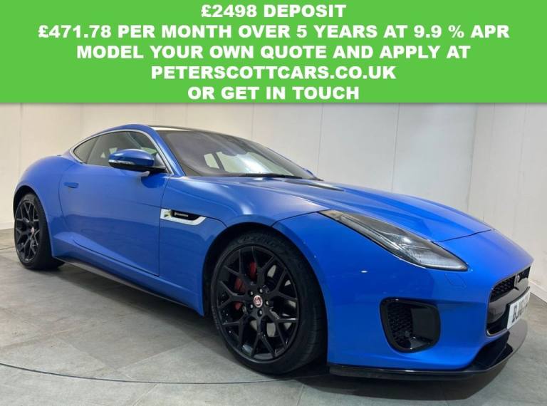 Stunning, high specification Jaguar F-Type with Panoramic sunroof, Satellite navigation, Apple CarPlay, Electric seats, Bluetooth audio and much more. Cared for and maintained to a high standard with a 5 stamp service history. Full set of premium branded Pirelli P-Zero tyres gives an indication of the level of care and maintenance afforded to this F-Type. This Jaguar has been independently inspected by the AA for your added peace of mind. We have uploaded a full Hd walkaround video to show the quality both inside and out of this Ultra Blue F-Type. Visit [Website URL removed], to reserve this car and apply for finance. Peter Scott Cars is an Award Winning family run dealership with over 30 years experience in the sourcing and supply of high quality vehicles..10.2in Touchscreen, 19in Alloy Wheels - 7 Split-Spoke Style 7013, 355mm Front and 325mm Rear Brakes, 5in Display with Instrument Panel - 190mph-300kmh, 6 Airbags, 6-Way Electric Front Seats, ABS - Anti-locking Braking System, Analogue Dials with Central TFT Display - 190mph-300kmh, Auto-Dimming Interior Rear View Mirror, Autonomous Emergency Braking, Black Exterior Pack, Bluetooth Connectivity, Boot Entrapment Release Lever, Carpet Mats - Premium, Chrome Exhaust Finisher, Chrome Instrument Cluster Dial Rings, Cruise Control with Speed Limiter, Delta Aluminium Centre Console, Deployable Boot Lid Spoiler, Digital Audio Broadcast - DAB - Radio, Door Mirrors - Body Coloured, Door Trim - Luxtec, Driver Condition Monitor, Dynamic Mode, Dynamic Stability Control - DSC, EBA - Emergency Brake Assist, EBD - Electronic Brake-Force Distribution, Ebony Door Release, Ebony Morzine Headlining, Electric Windows - Front, EPB - Electric Parking Brake, F-TYPE Badge, Fixed Aluminium Roof, Fixed Panoramic Roof, Flush Exterior Door Handles, Front Deployable Vents, Gloss Black Bonnet Louvres, Gloss Black Front Bumper Beam - Gloss Black Chin - Chrome Insert, Gloss Black Rear Valance and Venturi Blade, Graphite Interior Trim Accent, Graphite Vent Surrounds, Heated Door Mirrors, InControl Apps, Infrared Reflective Windscreen, Interior Lighting, Jaguar Tyre Repair System, Lane Departure Warning, Lane Keep Assist, Leather Steering Wheel, LED Headlights with Signature Daytime Running Lights and Adaptive Front Lighting, LED Tail Lights, Low Line Cubby Box, Luxtec Wrapped Instrument Panel Topper, Meridian Sound System, Metal Treadplates with R-Dynamic Branding, Navigation Pro System, Not Heated Steering Wheel, Open Differential with Torque Vectoring by Braking, Overhead Lighting Console, P300 Badge, Passive Suspension, Pedestrian Contact Sensing, Perimeter Sensing Alarm and Immobiliser, Pollen Filter, Power Assisted Steering, Pro Services, Protect, Push Button Start, R-Dynamic Badge, Rain Sensing Windscreen Wipers, Rain-Ice-Snow Mode, Rear Parking Aid, Red Brake Calipers, Remote Control Central Locking with Dead Locking and Drive-Away Locking, Remote Premium, Satin Black Grille with Chrome Surround, Satin Chrome Side Window Surrounds, Seats - Sports, Side Sills - Gloss Black, Silver Brake Calipers, Silver Gearshift Paddles, Single Zone Automatic Climate Control, Standard Console, Steering Column - Electrically Adjustable, Sun Visors - Ebony Morzine, Switchable Active Sports Exhaust, Tou
