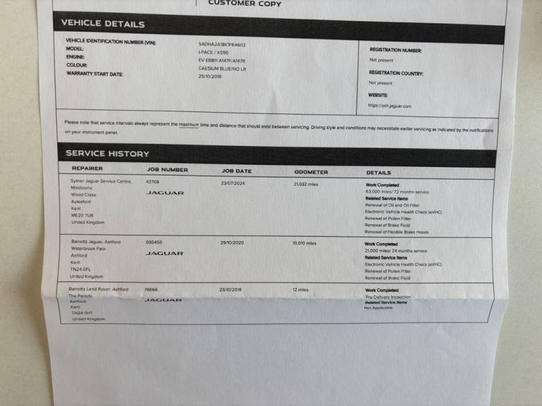 Posting for 5+ years2018 Jaguar I-Pace 400 90kWh S SUV 5dr Electric Auto 4WD (400 ps) HATCHBACK ELECTRIC Automatic