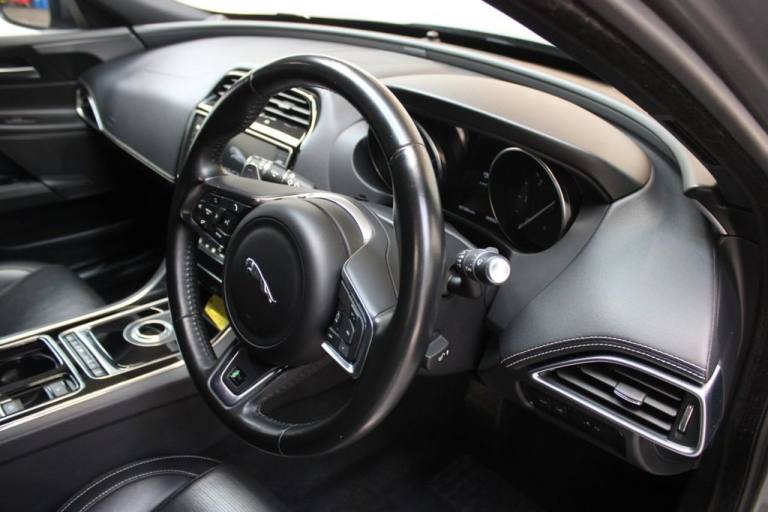 NEW IN STOCK. GREY. HPI CLEAR. DATE OF REGISTRATION: 17/05/2018. 2 Keys. (Will be serviced again by RDM) Specification includes: Satellite Navigation, Rear Camera, Front and Rear Sensors, Leather Seats, Heated Seats, DAB, Bluetooth, Cruise Control. 12 month AA Breakdown Assistance included. Finance available. Part Exchange Welcome. Visit our website: [Website URL removed] to view our latest diversified stock listings..10in Touch Pro, 12V Power Sockets, 18in Alloy Wheels - 5 Spoke - Style 5030 - Diamond Turned Finish, 2-Zone Climate Control, 20d AWD Badge, 5in Instrument Display with Analogue Dials, 8-Way Manual Front Seats with Electric Recline, ABS - Anti-locking Braking System, AM-FM-DAB Radio, ASPC - All Surface Progress Control, Airbags - Driver and Front Passenger with Seat Occupant Detector for Passenger, Ambient Interior Lighting, Auto-Dimming Interior Rear View Mirror, Automatic Headlights, Bluetooth Streaming, Bluetooth Telephone Connectivity, Body-Coloured Extended Side Sills, Boot Lid Spoiler, Brake Pad Wear Indicator, Bright Metal Pedals, Cruise Control with Speed Limiter, Dynamic Stability Control and Traction Control, EBA - Emergency Brake Assist, EPAS - Electric Power Assisted Steering, EPB - Electronic Parking Brake - Drive Away Release, Ebony Morzine Headlining, Electric Windows - Front and Rear with One-Touch Open-Close and Anti-Trap, Electronic Active Differential with Torque Vectoring by Braking, Emergency Braking, Etched Aluminium Trim Finisher, Front Armrest with Storage Compartment, Gear Shift Change Paddles, Gloss Black Side Window Surround, Grained Black Radiator Grille with Satin Chrome Surround, Hazard Lights Under Heavy Braking, Headlight Power Wash, Heated Door Mirrors, Heated Front Seats, ISOFIX Child Seat Mountings in Rear, InControl Apps, InControl Protect, InControl Remote Premium for Warranty Period, Jaguar Smart Key System with Keyless Start, Jaguar Sound System, LED Tail Lights, Lane Departure Warning, Leatherette Stitched Dashboard, Locking Wheel Nuts, Luxtec Wrapped Instrument Panel Topper, Metal Treadplates with R-Sport Branding, Navigation Pro, Pedestrian Contact Sensing, Power Operated Child Locks, Premium Carpet Mats, Pro Services and Wi-Fi Hotspot, R-Sport Body Kit, R-Sport Branded Soft Grain Leather Steering Wheel, R-Sport Front Bumper, Rain Sensing Windscreen Wipers, Rear Armrest with Twin Cupholders, Rear Parking Aid, Remote Control Central Locking with Dead Locking and Drive-Away Locking, Satin Chrome Side Vents with R-Sport Badge, Satin Chrome Touchscreen Surround, Seat Belt Reminder, Seats - Sports, Sliding Cover for Front Cup Holders, Sports Suspension, Traffic Sign Recognition with Adaptive Speed Limiter, Trailer Stability Assist, Twin Front Cupholders, Tyre Pressure Monitoring System, Tyre Repair System, USB - Auxiliary Socket and iPod Connectivity, Voice Control, Xenon Headlights with LED Signature