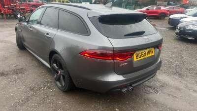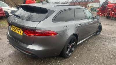 Jaguar XF 2.0d R-Sport Sportbrake Auto Euro 6 (s/s) 5dr estate,2018/68,metallic grey coded coachwork with full charcoal black perforated leather sports trim ,e/windows,e/mirrors,r/c/locking,part/e/heated seats,dab r/media/bluetooth/aux/satnav etc,air/climate,pas,abs,tints,roofrails,e/tailgate,rear parking sensors,black alloys,history,lovely car, px poss