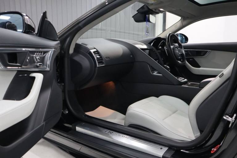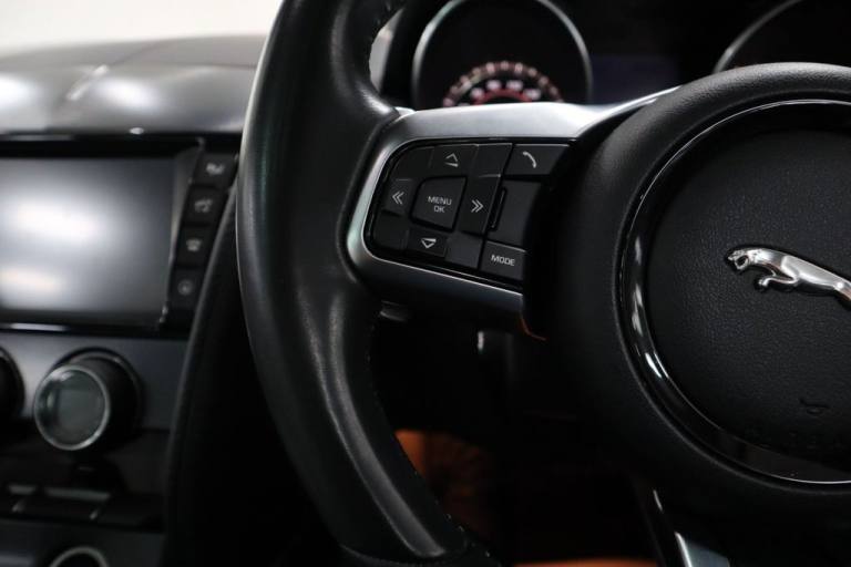 JUST ARRIVED INTO STOCK! COVERING 17K MILES FROM NEW BACKED WITH AN IMPECCABLE FULL JAGUAR MAIN DEALER SERVICE HISTORY! VERY SOUGHT AFTER EXAMPLE, BE QUICK! SIMPLY INCREDIBLE! FINISHED IN SANTORINI BLACK METALLIC! SPEC INCLUDES, FIXED PANORAMIC GLASS ROOF, 12 WAY ELECTRIC MEMORY FRONT SPORTS SEATS, UPGRADED 20 INCH ALLOY WHEELS WITH CARBON FIBRE BLADE INSERTS, RED PAINTED BRAKE CALIPERS, SWITCHABLE ACTIVE SPORTS EXHAUST, BLACK EXTERIOR STYLING PACKAGE, MERIDIAN PREMIUM SOUND SYSTEM, LEATHER MULTI FUNCTION FLAT BOTTOM STEERING WHEEL, REAR VIEW CAMERA, INFRARED REFLECTIVE WINDSCREEN, DEPLOYABLE BOOT SPOILER, CRUISE CONTROL, LED PREMIUM HEADLIGHTS, LANE DEPARTURE WARNING, PRO SERVICES, REVERSE PARKING AID! RARE, INCREDIBLE EXAMPLE, PANORAMIC ROOF, PAN ROOF, GLASS ROOF, EXCEPTIONAL VALUE FOR MONEY, EARLY VIEWING IS ESSENTIAL TO AVOID DISAPPOINTMENT, VERY BEST COLOUR COMBINATION, COMPREHENSIVE WARRANTY OPTIONS AVAILABLE, AA BREAKDOWN COVER AVAILABLE, STUNNING SHOWROOM CONDITION, MUST BE SEEN NOT TO BE MISSED, BE VERY QUICK THIS GEM WILL SOON GO!, VIEW MORE PICS ON OUR WEBSITE, PLEASE CALL FOR FULL SPEC, SIMPLY STUNNING! Every effort has been made to ensure the Vehicle details are correct, however errors may occur please check details with our Sales Team before visiting.12-Way Electric Front Seats with Memory, 20in Alloy Wheels - 5 Spoke Style 5042 with Carbon Finish and Satin Dark Grey Diamond Turned Finish, Black Exterior Pack, Fixed Panoramic Roof, Flat-Bottom Leather Steering Wheel, Red Brake Calipers, Santorini Black
