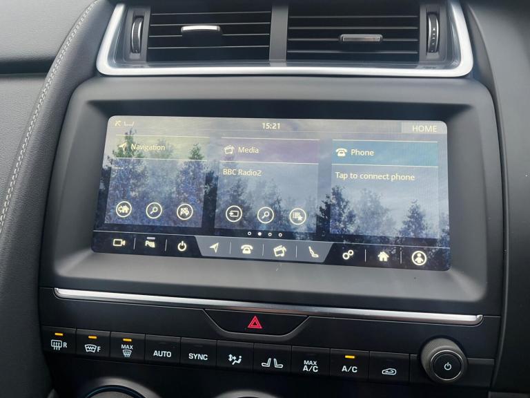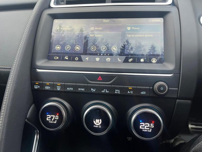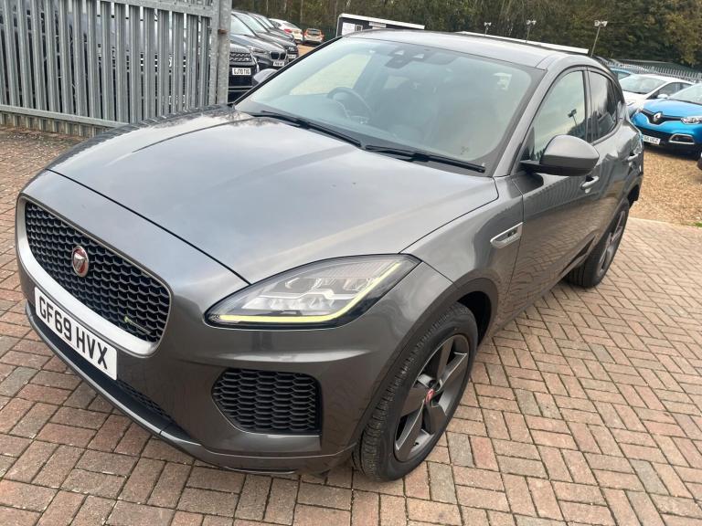 SUPERB E PACE IN MET. GREY WITH FULL BLACK LEATHER & HEATED FRONT SEATS L Features Include: , 10-way electric front seats, 10in touch pro, 18in alloy wheels - 5 spoke style 5048, 2-zone climate control, 3-flash lane change indicators, 60-40 split fold rear seat, abs - anti-locking braking system, am-fm radio, aspc - all surface progress control, airbags - front side, airbags - full length side window curtain, analogue dials with central tft display, approach illumination, auto-dimming - power fold - heated door mirrors with approach lights, auto-dimming interior rear view mirror, automatic headlights, black gearshift paddles, bluetooth connectivity, body coloured roof, body-coloured door claddings, bright metal pedals, centre console cubby box, centre console with armrest, connect pro pack, cruise control with speed limiter, customer configurable autolock, d180 awd badge, dab radio, diesel misfuelling protection device, driver condition monitor, dynamic stability control - dsc, dynamic volume control, e-pace badge, eba - emergency brake assist, ebd - electronic brake-force distribution, eco driving style assistant, epas - electric power assisted steering, epb - electric parking brake, ebony morzine headlining, efficient driveline, electric windows - front and rear with one-touch open-close and anti-trap, emergency braking, front airbags with passenger seat occupant detector, front fog lights, front and rear parking aid, gloss black grille with satin chrome surround, heated front windscreen, heated rear window, heated washer jets, hill launch assist, hooks in loadspace, incontrol apps, interior lighting, intrusion sensor, jaguar script and leaper, jaguardrive control, led headlights with signature daytime running lights, lane keep assist, loadspace cover, loadspace elasticated side-strap, loadspace lighting, loadspace storage net, locking wheel nuts, luggage tie downs in loadspace, manual tailgate - boot lid, metal treadplates with r-dynamic branding, navigation pro system, outside temperature gauge, overhead lighting console, passive front head restraints, passive suspension, power operated child locks, power sockets, push button start, r-dynamic badge, r-dynamic body kit, r-dynamic body-coloured bumpers, r-dynamic branded leather steering wheel, rain sensing windscreen wipers, rear air vents, rear bench seat - 3 seats, rear centre headrest, rear fog lights, rear isofix, rear view camera, remote, s badge, satin black side window surround, satin chrome