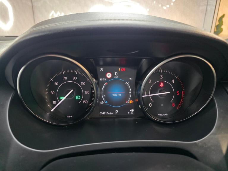 Comes with 2 keys and sat at a low mileage and 18” 5-spoke Style 5048 alloy wheels in gloss sparkle silver, R-Dynamic body-coloured bumpers, gloss black grille with satin chrome surround, satin black window surrounds, satin chrome side vents, LED headlights with signature daytime running lights, front fog lights, heated front windscreen, heated washer jets, heated rear window, approach illumination, rear spoiler, twin tailpipes with finishers, locking wheel nuts and summer tyres. 10-way heated electric front seats, 2-zone climate control, Ebony Morzine headlining, R-Dynamic leather steering wheel with black gearshift paddles, bright metal pedals, centre console with armrest, carpet mats, rear air vents, 60:40 split-fold rear seats with centre headrest, interior ambient lighting, illuminated vanity mirrors, overhead lighting console and generous loadspace with cover, nets, hooks and lighting. 10” Touch Pro infotainment with Navigation Pro, Apple CarPlay & Android Auto, DAB/AM-FM radio, Bluetooth, Pro Services with Wi-Fi hotspot, 125W sound system, rear view camera, front & rear parking aids, cruise control with speed limiter, JaguarDrive Control, all-surface progress control, dynamic stability control, emergency braking, lane keep assist, traffic sign recognition with adaptive speed limiter, torque vectoring by braking, tyre pressure monitoring, electric parking brake, keyless push-button start and a full suite of airbags and safety systems.