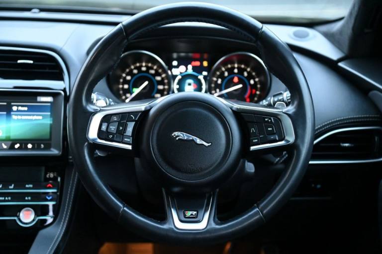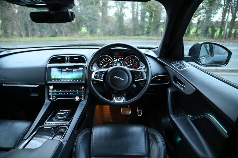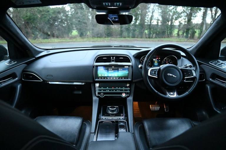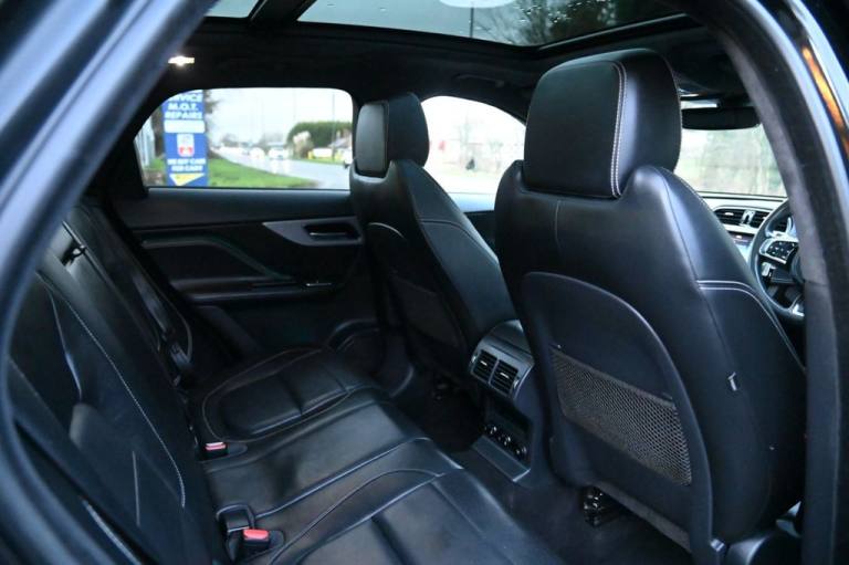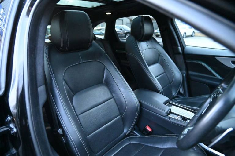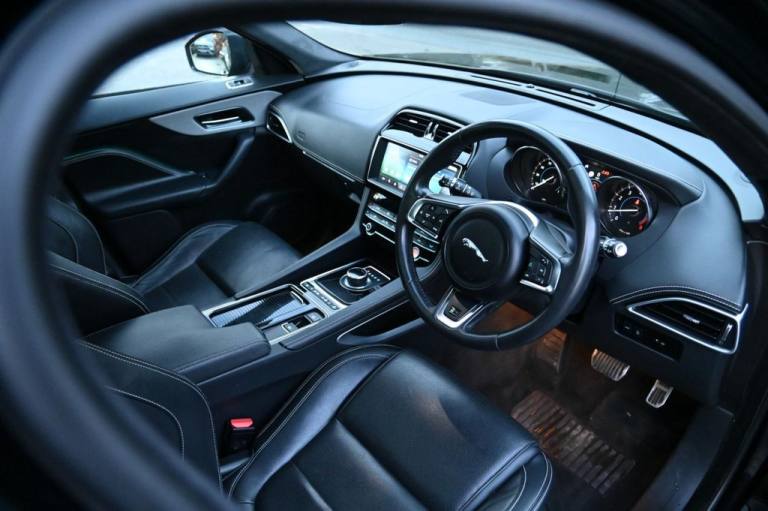 Prestige Car Supermarket in York presents this 2019 Jaguar F-PACE 2.0 P250i R-Sport AWD, finished in Santorini Black with the Black Pack, 20in Gloss Black 5031 alloy wheels, panoramic sliding roof and privacy glass, delivering 250 ps through a smooth petrol automatic drivetrain. This performance-focused SUV features R-Sport exterior styling, gloss black roof rails, LED signature xenon headlights, front fog lights, heated mirrors, powered tailgate and 40-20-40 split rear seating. The cabin combines Ebony materials with an R-Sport soft-grain leather steering wheel, heated front seats, ambient lighting, etched aluminium trim, suedecloth headlining, dual-zone climate control and extensive storage solutions. Technology includes the 10in Touch Pro system, Navigation Pro, Connect Pro with Pro Services and Wi-Fi hotspot, InControl Apps, DAB, Bluetooth streaming, rear camera and parking aids front and rear. Safety and driver assistance systems comprise Lane Keep Assist, Traffic Sign Recognition with adaptive speed limiter, Emergency Braking, Driver Condition Monitor, All Surface Progress Control, torque vectoring by braking, cruise control with speed limiter, ISOFIX, tyre pressure monitoring and power child locks. With its premium specification, AWD capability and dynamic R-Sport character, this F-PACE offers an exceptional balance of refinement, performance and practicality. With over 1000 5* Reviews Prestige Car Supermarket proudly stands as the premier destination for discerning buyers seeking the best value in prestige vehicles across the UK. Our comprehensive offerings include meticulously prepared cars from our in-house preparation centre, each undergoing a rigorous multi-point inspection. To secure your desired vehicle, we offer a fully refundable £250 reservation facility accessible online or over the phone, Subject to T&Cs. Sales Executives are available to provide tailored walkaround videos upon request. While every effort is made to maintain accurate vehicle information, specifications may vary. we encourage customers to verify details with our Sales Executives. Recognised as a finalist in the Autotrader Retailer Awards and highly regarded for our commitment to exceptional customer service, we invite you to experience the excellence of Prestige Car Supermarket, Prestige Cars at affordable prices. .Black Pack - R-Sport, Sliding Panoramic Roof, Privacy Glass, 20in Alloy Wheels - 5 Split-Spoke Style 5031 with Gloss Black Finish, Santorini Black, 10in Touch Pro, 2-Zone Climate Control, 25t AWD Badge, 3-Flash Lane Change Indicators, 325mm Front Brakes, 40-20-40 Split Fold Rear Seat, 8-Way Manual Front Seats, ABS - Anti-locking Braking System, AM-FM Radio, ASPC - All Surface Progress Control, Airbags - Front Side, Airbags - Full Length Side Window Curtain, Ambient Interior Lighting, Analogue Dials with Central TFT Display, Android Auto, Apple CarPlay, Approach Illumination, Auto-Dimming Interior Rear View Mirror, Bluetooth Connectivity, Bluetooth Streaming, Body Coloured Door Mirror Caps, Body-Coloured R-Sport Door Claddings with Satin Black Finishers, Brake Pad Wear Indicator, Bright Metal Pedals, Centre Console - Side Stowage, Centre Console - Storage Surround Finishers - Satin Chrome, Centre Console with Armrest, Connect Pro, Cruise Control with Speed Limiter, Digital Audio Broadcast - DAB - Radio, Door Trim - Luxtec, Driver Condition Monitor, Dual Tailpipes with 75mm Finishers, Dynamic Stability Control - DSC, Dynamic Volume Control, EBA - Emergency Brake Assist, ECO Driving Style Assistant, EPAS - Electric Power Assisted Steering, EPB - Electronic Parking Brake, Ebony Suedecloth Headlining, Electric Windows - Front and Rear with One-Touch Open-Close and Anti-Trap, Electrically Adjustable Heated Door Mirrors, Emergency Braking, Etched Aluminium Trim Finisher, F-PACE Badge, Front Airbags with Passenger Seat Occupant Detector, Front Bumper - R Sport, Front Fog Lights, Front Headrests, Front Windscreen with Non-acoustic Layer, Front and Rear Parking Aid, Gloss Black Roof Rails, Gloss Black Side Window Surround, Glovebox Finisher with Jaguar Script, Green Tinted Glass, Headlight Power Wash, Heated Front Seats, Heated Rear Window, Hill Launch Assist, Hook in Loadspace, ISOFIX Rear, Illuminated Metal Treadplates with Brand-Name Script, InControl Apps, Interior Front Door Handles with Separate Locking Switches, Jaguar Script and Leaper, Jaguar Sound System, JaguarDrive Control, LED Tail Lights, Lane Keep Assist, Lockable Glovebox, Luggage Tie Downs in Loadspace, Luxtec Wrapped Instrument Panel Topper with Wrapped Binnacle, Manually Adjustable Steering Column, Metal Loadspace Scuff Plate, Navigation Pro, No Loadspace Storage Rails, Open Differential with Torque Vectoring by Braking, Outside Temperature Gauge, Overhead Lighting Console, Passive Front Head Rest