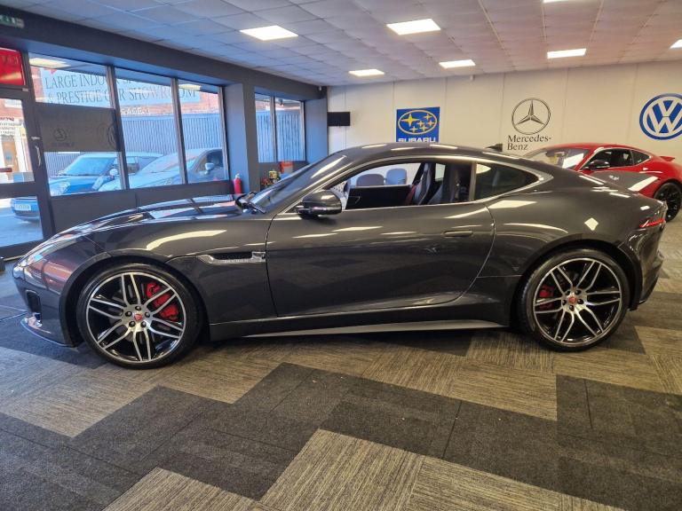 Great looking 3.0 R-Dynamic coupe in Storm Grey, sat on 20 inch 6 split-spoke style 6003 dark grey diamond turned finish alloy wheels over red calipers with R-Dynamic body styling assisting that aggressive stance. The performance of this F Type is very impressive, with a rapid 0 to 60 miles per hour acceleration time of just 4.9 seconds, underlining its dynamic capabilities. One of the main attributes of the F-Type is how they drive. A lot of sports cars to be fair are not the nicest of drives, but you will forsake their harshness to have a good looking vehicle that will give you a thrill from time to time. Thnk about it. Do you think a formula 1 car is actually a comfortable drive!? These are actually a pleasure to drive and they've obviously got the get up and go when ready to unleash. So if you want something that looks, sounds and drives the part, it doesn't get much better than an F-Type. This Beauty was over 70,000 new so should look good a few years down the line at 29,999!