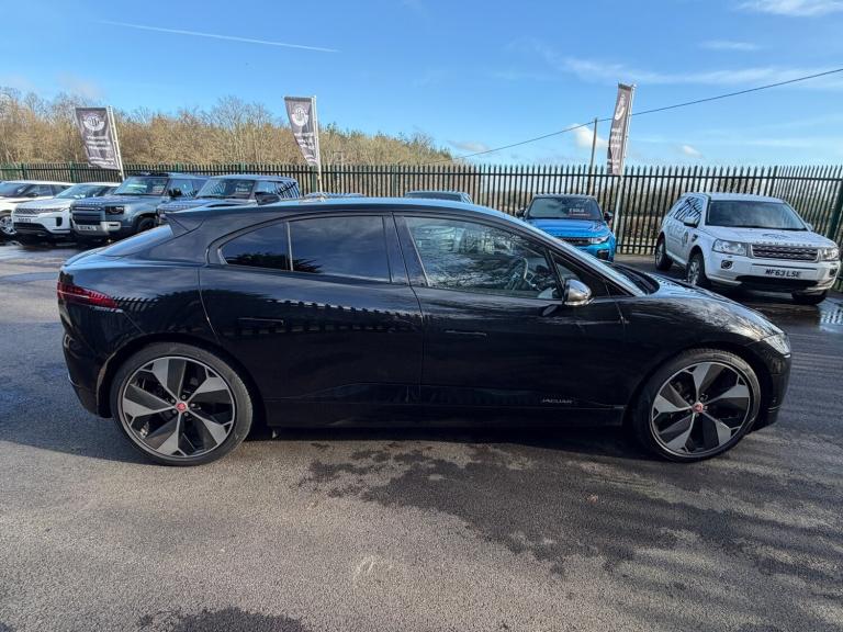 .Here we have a Jaguar I-Pace first edition, the vehicle is finished in Santorini Black with carbon detailing, Privacy Glass and 22 inch diamond turned wheels with carbon. Inside the vehicle it is finished in Black Leather. The vehicle has only had 2 owners from new & has only covered 23100 miles, it also has a full service history (3 services in total) The vehicle has a huge specification including front performance seats, a black suede headlining, it also has a panoramic roof. It has also got Apple car play, Blind spot monitoring, Full park assist, Head up display, Surround camera system, Adaptive cruise control. It also has front & rear parking sensors, A meridian sound system, Wifi hotspot and reverse traffic detection. It is also fitted with heated and cooled front seats and heated rear seats, both front seats are also electric & have memory. It is also fitted with Air Suspension.The vehicle will also leave us with a new Mot as well as 6 months warranty..10'' touch screen, 360 Park distance control, Adaptive cruise control with steering assist, Apple car play/Android Auto, Blind spot assist, Bluetooth system, Clear exit monitor, Driver condition monitor, Electric Gesture Tailgate, EPAS, Head up Display, InControl Touch navigation pro, Interactive Driver display instrument cluster, Lane keep assist, Outside temperature gauge, Park assist - Parallel, perpendicular and parking exit, Pro services and wifi hotspot, Push button starter, Rear cross traffic alert, Surround camera system, Traffic sign recognition with adaptive speed limiter, Trip computer, Voice control system, Active air suspension, Adaptive dynamics, Adaptive surface response (ASR), AM/FM DVD MP3 radio, DAB Digital radio, Dynamic volume control, InControl apps, Meridian surround audio system, Acoustic windscreen, Auto dimming rear view mirror, Automatic headlamp levelling, Bike rack preparation, Body colour bumpers, Body colour door handles, Body colour door mirrors, Electric folding, auto dimming, heated door mirrors with memory + approach lights, Electric front/rear windows with one touch/auto up/down, Fixed panoramic glass sunroof, Follow me home headlights, Front fog lights, Gloss black grille with satin chrome surround, Gloss black side window surrounds, Headlight washers, Heated front windscreen, Heated rear window with timer, Heated washer jets, Infra-red reflective glass windscreen, LED tail lights, Matrix LED headlights with signature DRL, Privacy glass, Rain sensor windscreen