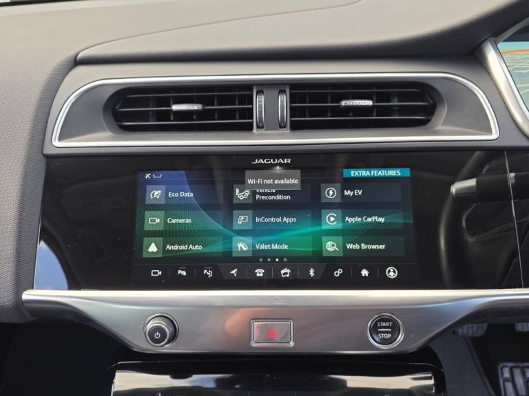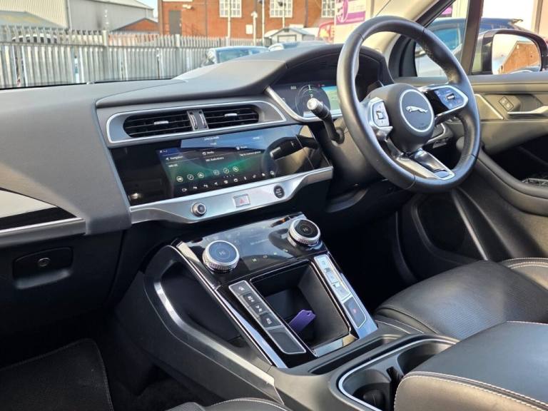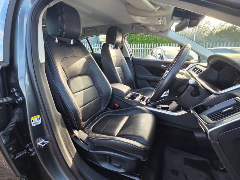 This 2019 Jaguar I-PACE 400 SE is presented with a clear vehicle history check, offering peace of mind for its next owner. As an all electric, four wheel drive vehicle, it combines advanced technology with Jaguars renowned performance. This SE trim model boasts a substantial 90 kWh battery, providing a maximum range of 292 miles when new. Charging is convenient, with a full charge from empty taking approximately 12 hours and 36 minutes on a 7kW home charger, and a rapid 50 minutes to reach 80% charge at a public charging station. The I-PACE 400 SE is equipped with a suite of notable features designed to enhance your driving experience. These include the Driver Assist Pack for added safety, 10 way heated electric memory front seats for ultimate comfort, and Premium LED Headlights with Signature Daytime Running Lights for superior visibility. Parking is made easier with a rear camera and parking assistance, while the Drive Pack incorporates Adaptive Cruise Control and Blind Spot Assistance. This Jaguar I-PACE stands out with its impressive acceleration, achieving 0 to 60 miles per hour in just 4.5 seconds, demonstrating its dynamic capabilities..DRIVER ASSIST PACKAGE, MERIDIAN SOUND, 2 KEYS , REVERSE TRAFFIC DETECTION, DRIVER AND PASSANGER MEMORY SEATS, Grained Leather - Ebony with Ebony-Ebony Interior and Sport Seats, Corris Grey, Driver Assist Pack, 10-Way Heated Electric Memory Front Seats, 10-Way Electric Memory Front Seats, 10in Touch Pro, 12V Power Socket in Loadspace, 2-Zone Climate Control, 20in Alloy Wheels - 6 Spoke - Style 6007 Gloss Sparkle Silver, 3 Rear Headrests, 3-Flash Lane Change Indicators, 6 Airbags, 60-40 Split Fold Rear Seat, ABS - Anti-locking Braking System, AM-FM Radio, ASPC - All Surface Progress Control, Acoustic Laminated Windscreen, Air Quality Sensor, Ambient Interior Lighting, Auto-Dimming - Power Fold - Heated Door Mirrors with Memory and Approach Lights, Auto-Dimming Interior Rear View Mirror, Bluetooth Connectivity, Body Coloured Door Mirror Caps, Body Coloured Roof, Brake Pad Wear Indicator, Chrome Side Window Surround, Coil Suspension, Cold Climate Pack, Connect Pro, Digital Audio Broadcast - DAB - Radio, Drive Pack, Driver Condition Monitor, Dynamic Stability Control - DSC, EBA - Emergency Brake Assist, EPB - Electric Parking Brake, EV400 Badge, Ebony Carpet, Electric Cabin Pre-Conditioning, Electric Windows - Front and Rear with One-Touch Open-Close and Anti-Trap, Emergency Braking, Flush Exterior Door Handles, Follow Me Home Lighting, Front Storage Compartment, Front and Rear Cupholders, Global Lock-Unlock Switch on Driver Door, Gloss Black Grille with Satin Chrome Surround, Gloss Black Lower Front Blades, Gloss Black Trim Finisher, Grained Black Door Claddings, Headlight Power Wash, Headlights - Automatic Levelling, Heated Rear Window with Timer, Hill Launch Assist, Home Charging Cable, Hooks in Loadspace, Interactive Driver Display, Interior Front Door Handles with Separate Locking Switches, Intrusion Sensor, Jaguar Script and Leaper, JaguarDrive Control, Keyless Entry, LED Rear Reading Light, LED Tail Lights, Lane Keep Assist, Light Oyster Morzine Headlining, Lock Only Switch on Front Passenger Door, Lockable Glovebox, Locking Wheel Nuts, Low Power Mode, Low Traction Launch, Luggage Tie Downs in Loadspace, Meridian Sound System, Metal Treadplates with Jaguar Script, Navigation Pro System, Open Differential with Torque Vectoring by Braking, Outside Temperature Gauge, Overhead Lighting Console, Overhead Stowage for Sunglasses, Park Assist, Park Pack, Passive Suspension, Power Operated Child Locks, Power Sockets, Powered Tailgate, Premium LED Headlights with