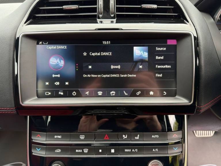 .Touch Pro Navigation Pack with Meridian Digital Sound System - 380w, Santorini Black, 10in Touch Pro, 12V Power Sockets, 18in Alloy Wheels - 10 Split-Spoke Style 1049, 2-Zone Climate Control, 20t Badge, 5in Instrument Display with Analogue Dials, 8-Way Manual Front Seats with Electric Recline, ABS - Anti-locking Braking System, AM-FM-DAB Radio, ASPC - All Surface Progress Control, Airbags - Driver and Front Passenger with Seat Occupant Detector for Passenger, Ambient Interior Lighting, Auto-Dimming Interior Rear View Mirror, Automatic Headlights, Bluetooth Streaming, Bluetooth Telephone Connectivity, Body Colour Bumpers with Vertical Blades, Body Coloured Side Cheeks, Body-Coloured Extended Side Sills, Boot Lid Spoiler, Brake Pad Wear Indicator, Bright Metal Pedals, Cruise Control with Speed Limiter, Dynamic Stability Control and Traction Control, EBA - Emergency Brake Assist, EPAS - Electric Power Assisted Steering, EPB - Electronic Parking Brake - Drive Away Release, Ebony Morzine Headlining, Electric Windows - Front and Rear with One-Touch Open-Close and Anti-Trap, Electronic Active Differential with Torque Vectoring by Braking, Emergency Braking, Front Armrest with Storage Compartment, Front Parking Aid, Gear Shift Change Paddles, Gloss Black Mirror Caps, Gloss Black Radiator Grille with Gloss Black Surround, Gloss Black Side Vent with Landmark Badge, Gloss Black Side Window Surround, Hazard Lights Under Heavy Braking, Headlight Power Wash, Heated Door Mirrors, Heated Front Seats, ISOFIX Child Seat Mountings in Rear, InControl Apps, InControl Protect, InControl Remote Premium for Warranty Period, Jaguar Smart Key System with Keyless Start, LED Tail Lights, Lane Departure Warning, Limited Edition Branded Leather Steering Wheel, Locking Wheel Nuts, Luxtec Wrapped Instrument Panel Topper, Meridian Sound System - 380W, Meshed Aluminium Trim Finisher, Metal Treadplates with Landmark Branding, Navigation Pro, Pedestrian Contact Sensing, Power Operated Child Locks, Premium Carpet Mats, Privacy Glass, Pro Services and Wi-Fi Hotspot, Rain Sensing Windscreen Wipers, Rear Armrest with Twin Cupholders, Rear Camera, Rear Parking Aid, Remote Control Central Locking with Dead Locking and Drive-Away Locking, Satin Chrome Touchscreen Surround, Seat Belt Reminder, Seats - Sports, Sliding Cover for Front Cup Holders, Traffic Sign Recognition with Adaptive Speed Limiter, Trailer Stability Assist, Twin Front Cupholders, Tyre Pressure Monitoring System, Tyre Repair System,