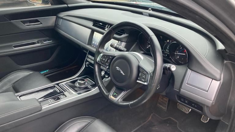 Discover this 2019 Jaguar XF d R-Sport, a sophisticated saloon that offers a compelling blend of style and practicality. This Euro 6 compliant model is powered by an efficient 2.0 litre diesel engine, making it a sensible choice for everyday driving. It comes equipped with Rear Parking Aid, including rear parking sensors, to assist you with manoeuvring in tighter spaces.This Jaguar XF R-Sport stands out with its generous boot space, providing ample room for luggage or shopping, a clear advantage over many other vehicles in its class. Furthermore, its low insurance group rating means that running costs are kept to a minimum, offering excellent value for money. This combination of practicality, efficiency, and affordability makes the XF d R-Sport a truly appealing option..Metallic Paint, Satellite Navigation, Alloy Wheels, Leather Seats, DAB Radio, Bluetooth, Parking Sensors, USB, Keyless Entry-Push Button Start, Rear Camera& Rain Sensors, Blue tinted glass, Traction control, Incontrol remote premium, Rear Parking Aid, Analogue dials with 7"" central TFT display, Frameless auto dimming interior rear view mirror, Dark morse code aluminium instrument panel finisher, USB and auxiliary socket, R-Sport front bumper, Headlight power wash, 2nd row air vents, Chrome seat switches, Autonomous emergency braking, Sports seats, Immobiliser, 8 speed automatic transmission, Sunvisors with illuminated vanity mirrors