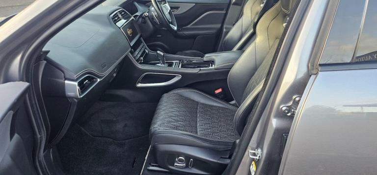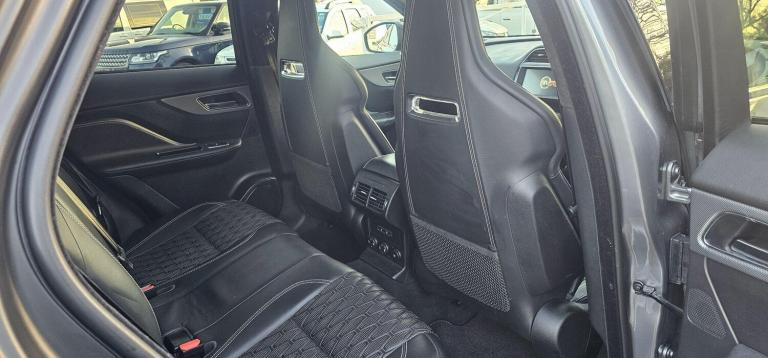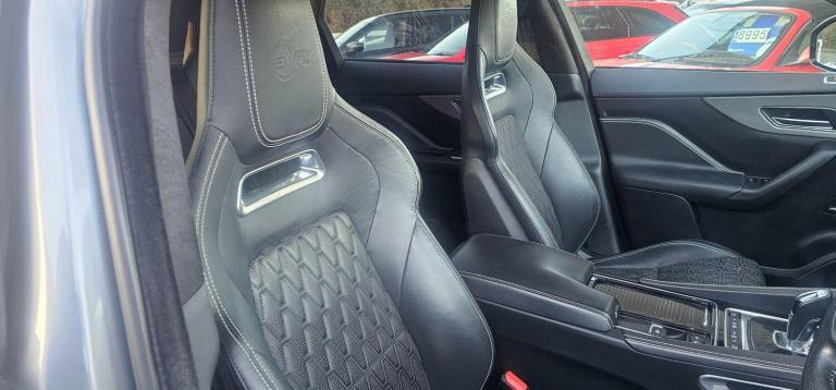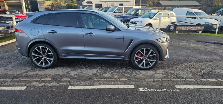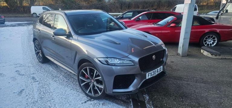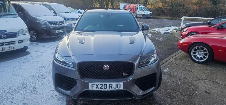 This 2020 Jaguar F-PACE V8 SVR offers an exceptional blend of performance and luxury, boasting a powerful 5.0L petrol engine and a sophisticated Four Wheel Drive system. As a Euro 6 compliant vehicle, it meets stringent emission standards. This F-PACE SVR also features convenient Keyless Entry, allowing effortless access, and a 2 Zone Climate Control system to ensure comfort for all occupants. Stay connected on the go with seamless Bluetooth Connectivity and Android Auto integration, while the Adaptive LED Headlights with LED Signature Daytime Running Lights provide excellent visibility in all conditions. With a generous boot space, it's as practical as it is potent, and it has a towing weight of 2400 kg. Experience exhilarating performance with the F-PACE SVR's remarkable 0-60mph acceleration in just 4.1 seconds, a figure that truly sets it apart from similar vehicles. This impressive speed is a testament to the engineering prowess behind this performance SUV, offering a driving experience that is both thrilling and refined. The combination of its potent V8 engine, advanced drivetrain, and thoughtful features makes this Jaguar F-PACE SVR a standout choice for those seeking a dynamic and capable vehicle. Features Include: , 10in touch pro, 14-way electric memory front seats, 2-zone climate control, 21in alloy wheels - 5 split-spoke style 5080 with diamond turned finish, 3-flash lane change indicators, 360 degree parking aid, 395mm front and rear brakes, 40-20-40 split fold svr rear seat, abs - anti-locking braking system, am-fm radio, aspc - all surface progress control, adaptive dynamics, adaptive led headlights with led signature daytime running lights, airbags - front side, airbags - full length side window curtain, aluminium gearshift paddles, ambient interior lighting, android auto, apple carplay, approach illumination, auto high beam assist, auto-dimming - power fold - heated door mirrors with memory and approach lights, auto-dimming interior rear view mirror, bluetooth connectivity, bluetooth streaming, body coloured door mirror caps, brake pad wear indicator, bright metal pedals, centre console - side stowage, centre console - storage surround finishers - satin chrome, centre console with armrest, configurable dynamics, connect pro, cruise control with speed limiter, digital audio broadcast - dab - radio, door trim - luxtec, driver condition monitor, dynamic stability control - dsc, dynamic volume control, eba - emergency brake assist, eco