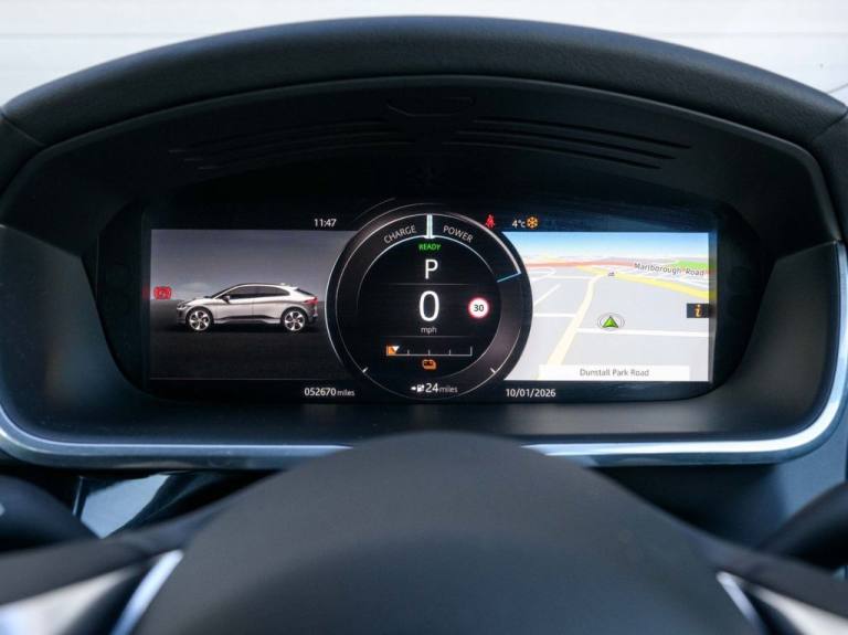 Sagitta is delighted to present for sale this Jaguar I Pace 400 S Electric Automatic 4WD in Metallic Santorini Black with a Full Black Leather Interior, the car benefits from the following specifications, Apple Car Play, Reversing Camera, Bluetooth, Voice Control, Heated Multi-Function Steering Wheel, Start Stop System, Meridian Sound System, DAB Radio, Surround Camera, Parking Sensors, Keyless, 19" 5 Split Alloys, Rear Spoiler, Rain Sensor, Service History with Jaguar MOT till 18.02.2027, More photos are available on our website, Part Exchange Welcome, all our cars come with a 6-month Warranty through Autoguard and 12 months of AA Roadside Assistance. Nationwide delivery is available, please contact us for a quote. Deposits can be taken over the phone. Payments can be made via bank transfer and Finance applications can be completed online. Whilst every effort is made to ensure the above details are correct, there may be some discrepancies, so please make sure to contact us for exact specifications and history on this vehicle. The vehicle specification displayed may not be exact for this vehicle. Please contact us to confirm the precise specifications..10in PiVI Pro, 12V Power Socket in Loadspace, 12V Power Sockets, 19in Alloy Wheels - 5 Split-Spoke Style 5055 Gloss Dark Grey with Diamond Turned Finish, 2-Zone Climate Control, 3 Rear Headrests, 3-Flash Lane Change Indicators, 3-Phase 11kW AC Onboard Charger, 360 Degree Surround Camera, 40-20-40 Folding Rear Seats with Centre Armrest, 6 Airbags, 8-Way Heated Semi-Powered Front Seats, ABS - Anti-locking Braking System, AM-FM Radio, ASPC - All Surface Progress Control, Acoustic Laminated Windscreen, Active Sound Design, Active Vanes, Android Auto, Apple CarPlay, Auto-Dimming - Power Fold - Heated Door Mirrors with Approach Lights, Auto-Dimming Interior Rear View Mirror, Bluetooth Connectivity, Body Coloured Roof, Brake Pad Wear Indicator, Cabin Lighting, Carpet Mats - Ebony, Coil Suspension, Configurable Dynamics, Cruise Control with Speed Limiter, Digital Audio Broadcast - DAB - Radio, Driver Condition Monitor, Dynamic Stability Control - DSC, EBA - Emergency Brake Assist, EPB - Electric Parking Brake, EV400 Badge, Ebony Carpet, Electric Cabin Pre-Conditioning, Electric Windows - Front and Rear with One-Touch Open-Close and Anti-Trap, Emergency Braking, Enhanced Brake Regeneration, Flush Exterior Door Handles, Follow Me Home Lighting, Front Storage Compartment, Front and Rear Cupholders, Front and Rear Parking Aid, Global Lock-Unlock Switch on Driver Door, Gloss Black Trim Finisher, Headlight Power Wash, Headlights - Automatic Levelling, Headlights - LED, Heated Rear Window with Timer, Heated Steering Wheel, Heated Washer Jets, Heated Windscreen, Hill Launch Assist, Home Charging Cable, Hooks in Loadspace, Interactive Driver Display, Interior Front Door Handles with Separate Locking Switches, Intrusion Sensor, Jaguar Script and Leaper, JaguarDrive Control, Keyless Entry, LED Rear Reading Light, LED Tail Lights, Lane Keep Assist, Light Oyster Morzine Headlining, Lock Only Switch on Front Passenger Door, Lockable Glovebox, Locking Wheel Nuts, Low Power Mode, Low Traction Launch, Luggage Tie Downs in Loadspace, Manual Tailgate, Metal Treadplates with Jaguar Script, Online Pack, Open Differential with Torque Vectoring by Braking, Outside Temperature Gauge, Overhead Lighting Console, Overhead Stowage for Sunglasses, Passive Suspension, PiVI Pro System, Pivi Pro Connected, Power Operated Child Locks, Power Sockets, Public Charging Cable, Rain Sensing Windscreen Wipers, Range for Route, Rear Bike Carrier Preparation Kit, Rear Fog Lights, Remote, S Badge, Screw-in
