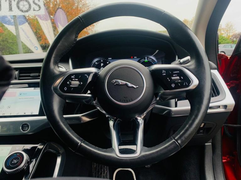 SPARE KEY,MOT 26/07/2026, MOT ADVISORY FIXED,FULL SERVICE HISTORY, 04 SERVICES BY JLR, Experience the future of driving with this 2020 Jaguar I-PACE 400 SE, a premium electric vehicle designed for performance and practicality. This Four Wheel Drive model boasts a substantial 90 kWh battery, offering a maximum range of 284 miles from new, ensuring you can travel further on a single charge. Enjoy the convenience of Keyless Entry, 10-Way Electric Memory Front Seats for personalized comfort, and seamless Bluetooth Connectivity. Stay powered up on the go with Wireless Device Charging, and navigate tight spaces with ease thanks to the comprehensive Park Pack, which includes front and rear parking sensors. The Jaguar I-PACE 400 SE stands out with its impressive acceleration, achieving 0-60mph in a remarkable 4.5 seconds, demonstrating its dynamic capabilities. For your convenience, a full charge at home using a 7kW charger takes approximately 12 hours and 36 minutes, while rapid public charging can replenish the battery from empty to 80% in just 50 minutes. Furthermore, this electric SUV offers generous boot space, making it ideal for both daily errands and longer journeys. These highlights collectively position the I-PACE as a superior choice in its class, blending exhilarating performance with everyday usability.
