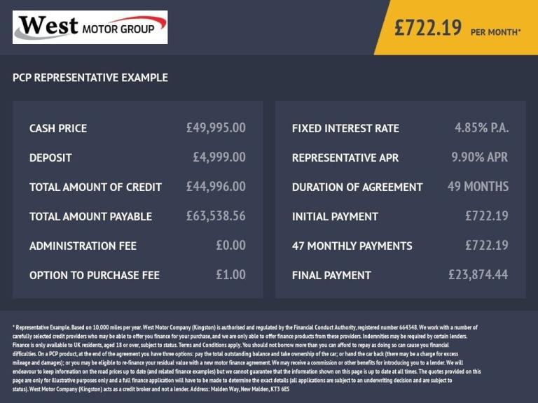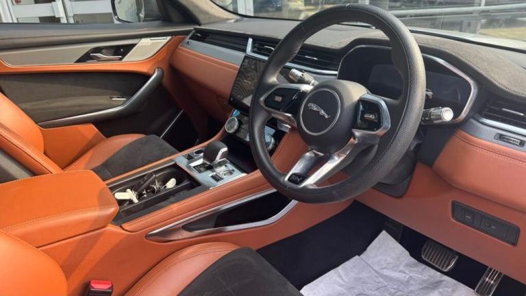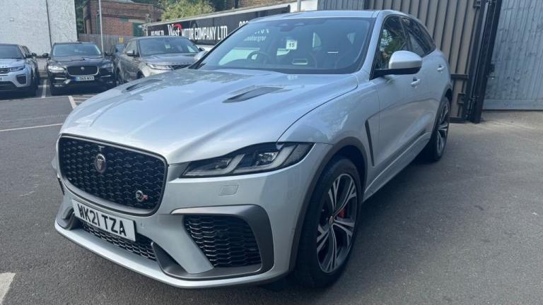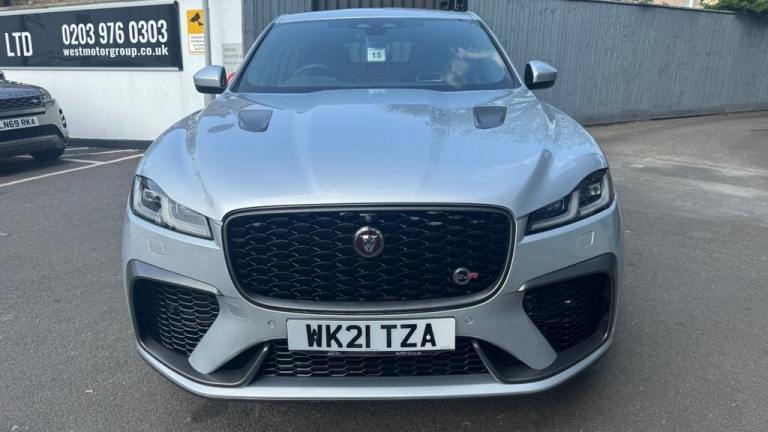 Exuding pure performance and refinement, this 2021 Jaguar F-Pace SVR commands attention with its stunning Hakuba Silver finish and exhilarating presence. Designed for those who demand power and precision, its dynamic stance is complemented by optional 21-inch diamond-turned alloys, enhancing both agility and aesthetic appeal. Inside, the Ebony/Sienna Tan leather interior delivers a sophisticated contrast, blending premium materials with a bold and dynamic aesthetic. The opening panoramic roof floods the cabin with natural light, creating an airy and spacious feel for every journey. The Meridian Sound System ensures an immersive audio experience, while 14-way adjustable front seats with a drivers memory function provide tailored comfort. A 360-degree camera system enhances visibility, offering a comprehensive view for confident maneuvering in any environment. Beneath the bonnet, the supercharged V8 delivers breathtaking performance, embodying Jaguars racing heritage while seamlessly integrating modern technology. A bold and exhilarating drive awaits. If you have found something you like but its not quite perfect, let us know! We have an on-site body shop and offer a full range of customisation from alloy/brake calliper painting to window tinting and full body kits. Feel free to give us a call on [Phone number removed] for a quote. West Motor Company Kingston is a JLR specialist car dealership, specializing in Jaguar and Land Rover. All of our vehicles are fully prepped to Manufacturer Approved standards by our Jaguar Land Rover Authorised Service Centre. You can call us for all information regarding car sales, booking in a service or MOT or any queries you may have. Low finance options are available and all part exchanges are welcome subject to view. We provide a 1 year warranty on sale of a vehicle with an option to extend on Land Rover and Jaguar branded vehicles, 6 months warranty on non-branded cars, subject to mileage and age..Full Leather, Satellite Navigation, 360 Camera, Meridian Surround Speaker System, Heated Steering Wheel, 10in Touch Pro, 11.4in Touchscreen, 14-Way Heated and Cooled Electric Memory Performance Front Seats, 2-Zone Climate Control, 21in Alloy Wheels - 5 Split-Spoke Style 5080 - Satin Technical Grey with Contrast Diamond Turned Finish, 21in Alloy Wheels - 5 Split-Spoke Style 5080 with Diamond Turned Finish, 3 Rear Headrests, 3-Flash Lane Change Indicators, 360 Degree Parking Aid, 395mm Front and Rear Brakes, 3D Surround Camera, 40-20-40 SVR Folding Heated Rear Seats with Centre Armrest, ABS - Anti-locking Braking System, ASPC - All Surface Progress Control, Adaptive Cruise Control, Adaptive Dynamics, Air Distribution Speed, Airbags - Front Side, Airbags - Full Length Side Window Curtain, Ambient Interior Lighting, Android Auto, Animated Directional Indicators, Apple CarPlay, Approach Illumination, Auto High Beam Assist, Auto-Dimming Interior Rear View Mirror, Automatic Headlights, Blind Spot Assist, Bluetooth Connectivity, Bluetooth Streaming, Body Coloured Roof, Brake Pad Wear Indicator, Bright Metal Pedals, Cabin Lighting, Centre Console - Storage Surround Finishers - Satin Chrome, Centre Console with Armrest, Clear Exit Monitor, Configurable Dynamics, Dark Satin Grey Bonnet Louvres, Dark Satin Grey Front Fender Grille, Digital Audio Broadcast - DAB - Radio, Driver Condition Monitor, Dynamic Stability Control - DSC, Dynamic Volume Control, EBA - Emergency Brake Assist, ECO Driving Style Assistant, EPAS - Electric Power Assisted Steering, EPB - Electronic Parking Brake, Ebony Suedecloth Headlining, Electric Windows - Front and Rear with One-Touch Open-Close and Anti-Trap, Electronic Active Differential with Torque Vectoring by Braking, Embossed Aluminium Trim Finisher, Emergency Braking, F-PACE Badge, Front Airbags with Passenger Seat Occupant Detector, Front Door Storage Space, Front and Rear Parking Aid, Front and Rear Wheel Arch Spats, Gloss Black Grille with Satin Grey Surround, Gloss Black Side Window Surround, Glovebox Finisher with Jaguar Script, Green Tinted Glass, Headlight Power Wash, Heated - Electric - Power Fold Memory Door Mirrors with Approach Lights and Auto-Dimming Driver Side, Heated Front Windscreen, Heated Rear Window, Heated Steering Wheel, Hill Launch Assist, Hook or Hooks in Loadspace, ISOFIX Rear, InControl Apps, Interactive Driver Display, Interior Front Door Handles with Separate Locking Switches, Jaguar Script and Leaper, Jaguar T