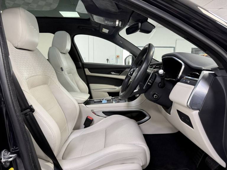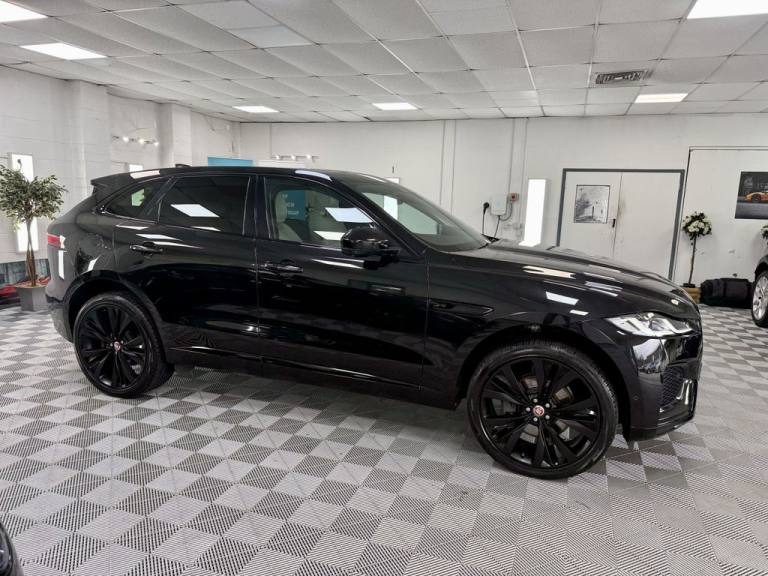 Lovely Jaguar F Pace R Dynamic HSE Finished in Santorini Black Metallic With Contrasting Ivory Leather. Vehicle Comes With Service History Including A New Service, A New 12 Months MOT and 6 Months Nation Wide Warranty. Big Specification And Finance Arranged .Powered Gesture Tailgate, Perforated Windsor Leather Sport Seats - Light Oyster with Ebony-Light Oyster Interior, Santorini Black, Fixed Panoramic Roof, Privacy Glass, Gloss Black Roof Rails, Black Exterior Pack, 22in Alloy Wheels - 15 Spoke Style 1020 with Gloss Black Finish and Satin Black Inserts, 11.4in Touchscreen, 14-Way Heated and Cooled Electric Memory Performance Front Seats, 2-Zone Climate Control, 21in Alloy Wheels - 5 Split-Spoke - Style 5104 - Satin Dark Grey with Contrast Diamond Turned Finish, 3 Rear Headrests, 3-Flash Lane Change Indicators, 355mm Front and 325mm Rear Brakes, 3D Surround Camera, 40-20-40 Folding Rear Seats with Centre Armrest, ABS - Anti-locking Braking System, ASPC - All Surface Progress Control, Adaptive Cruise Control, Adaptive Dynamics, Air Distribution Speed, Airbags - Front Side, Airbags - Full Length Side Window Curtain, Android Auto, Animated Directional Indicators, Apple CarPlay, Approach Illumination, Auto High Beam Assist, Auto-Dimming Interior Rear View Mirror, Automatic Headlights, Blind Spot Assist, Bluetooth Connectivity, Bluetooth Streaming, Body Coloured Roof, Brake Pad Wear Indicator, Cabin Lighting, Centre Console with Armrest, Centre Console with Side Storage, Clear Exit Monitor, Configurable Dynamics, Digital Audio Broadcast - DAB - Radio, Driver Condition Monitor, Dynamic Stability Control - DSC, Dynamic Volume Control, EBA - Emergency Brake Assist, ECO Driving Style Assistant, EPAS - Electric Power Assisted Steering, EPB - Electronic Parking Brake, Ebony Suedecloth Headlining, Electric Windows - Front and Rear with One-Touch Open-Close and Anti-Trap, Emergency Braking, F-PACE Badge, Front Airbags with Passenger Seat Occupant Detector, Front Door Storage Space, Front and Rear Parking Aid, Glovebox Finisher with Jaguar Script, Green Tinted Glass, Heated - Electric - Power Fold Memory Door Mirrors with Approach Lights and Auto-Dimming Driver Side, Heated Front Windscreen, Heated Rear Window, Heated Steering Wheel, Hill Launch Assist, Hook or Hooks in Loadspace, ISOFIX Rear, Illuminated Metal Treadplates with Brand-Name Script, Interactive Driver Display, Interior Front Door Handles with Separate Locking Switches, Jaguar Script and Leaper, Jaguar Tyre Repair System, JaguarDrive Control, Keyless Entry, LED Tail Lights, Lane Keep Assist, Lockable Glovebox, Luggage Tie Downs in Loadspace, Meridian Sound System, Metal Loadspace Scuff Plate, Mist Sensing, Online Pack with Data Plan, Open Differential with Torq