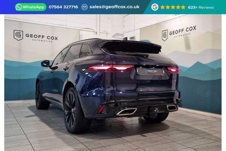 3D Surround Camera,Black Exterior Pack,Perforated Windsor Leather Performance Seats - Light Oyster with Ebony-Light Oyster Interior,Sliding Panoramic Roof, Android Auto, Apple CarPlay, Digital Audio Broadcast - DAB - Radio, Meridian Sound System, Online Pack with Data Plan, Pivi Pro Connected, Remote, Secure Tracker (12 Month Subscription From New), Adaptive Cruise Control with Steering Assist, Blind Spot Assist, Brake Pad Wear Indicator, Configurable Dynamics, Driver Condition Monitor, Front and Rear Parking Aid, Rear Camera, Rear Collision Monitor, Traffic Sign Recognition with Adaptive Speed Limiter, Tyre Pressure Monitoring System, 21in Alloy Wheels - 5 Split-Spoke - Style 5104 - Satin Dark Grey with Contrast Diamond Turned Finish, D300 AWD Badge, Electric Windows - Front and Rear with One-Touch Open-Close and Anti-Trap, Heated - Electric - Power Fold Memory Door Mirrors with Approach Lights and Auto-Dimming Driver Side, Heated Front Windscreen, Jaguar Tyre Repair System, R-Dynamic Badge, R-Dynamic Exterior Pack - Bumper Finishes-Inserts - Grille - Door Cladding, Rear Fog Lights, Summer Tyres, Unpainted Brake Calipers, Auto High Beam Assist, Automatic Headlights, Premium LED Headlights with Signature DRL, 14-Way Heated and Cooled Electric Memory Performance Front Seats, 2-Zone Climate Control, 3 Rear Headrests, 40-20-40 Folding Rear Seats with Centre Armrest, Animated Directional Indicators, Auto-Dimming Interior Rear View Mirror, Bright Metal Pedals, Ebony Suedecloth Headlining, Heated Steering Wheel, Illuminated Metal Treadplates with Brand-Name Script, Interactive Driver Display, Lockable Glovebox, Metal Loadspace Scuff Plate, Passive Front Head Restraints, Powered Tailgate - Boot Lid, Premium Cabin Lighting, Premium Carpet Mats, Push Button Start, R-Dynamic Branded Leather Steering Wheel, Satin Charcoal Ash Veneer, Steering Column - Electrically Adjustable, Adaptive Dynamics, EPAS - Electric Power Assisted Steering, Open Differential with Torque Vectoring by Braking, Speed Proportional Steering, ABS - Anti-locking Braking System, Airbags - Front Side, Airbags - Full Length Side Window Curtain, Clear Exit Monitor, Dynamic Stability Control - DSC, EBA - Emergency Brake Assist, Emergency Braking, EPB - Electronic Parking Brake, Front Airbags with Passenger Seat Occupant Detector, ISOFIX Rear, Keyless Entry, Lane Keep Assist, Power Operated Child Locks, Rear Traffic Monitor, Seat Belt Reminder, Trailer Stability Assist.*Highest quality photos on our website*Our stunning 2021 Jaguar F-PACE D300 MHEV R-Dynamic HSE is the perfect blend of luxury, power and athletic style. With its dynamic stance, refined cabin and silky-smooth mild-hybrid performance, this premium SUV offers an experience that feels both effortless and exciting. Key Features:3.0-litre D300 mild-hybrid diesel engine delivering impressive torque, swift acceleration and superb efficiency.Smooth 8-speed automatic transmission paired with Jaguar’s intelligent all-wheel drive for exceptional grip and refinement in all conditions.R-Dynamic HSE styling with sporty exterior accents, premium detailing and a bold road presence.Panoramic glass roof flooding the cabin with natural light and enhancing the premium feel.Digital driver display providing sharp graphics and all key info at a glance.Meridian premium sound system delivering rich, immersive audio.Adaptive Dynamics and configurable driving modes allowing you to tailor the drive from relaxed comfort to sporty responsiveness.Powerful, premium and packed with tech, the F-PACE D300 R-Dynamic HSE proves that practicality and excitement can absolutely go hand in hand.Peace of Mind with Our Used Car Guarantee:? 6 Months Warranty included, with the option to extend up to 3 years for added reassurance.? Minimum 6 month MOT, so you can drive away worry-free.? Full Vehicle Health Check (VHC) conducted by our expert technicians.? 12 Months AA Breakdown Cover, providing roadside assistance wherever you go.? Full HPI checks for complete peace of mind.Why Choose Geoff Cox Automotive• Custom video walkarounds and virtual vehicle demonstrations available on any car.• Full vehicle demonstrations and inspections at our Derbyshire showroom.• Reserve your car online via our website for £99.• Book a test drive on any of our cars.• AA approved dealer, meeting or exceeding AA approved standards on all used cars.