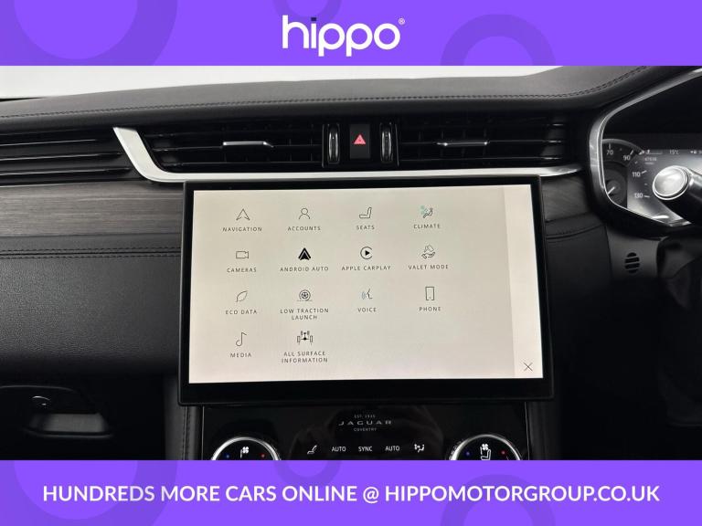 Presenting this Jaguar F-PACE 2.0 D200 MHEV S SUV, featuring a powerful and efficient diesel engine paired with an automatic all-wheel drive transmission, compliant with Euro 6 emissions standards. Having covered 47,633 miles, this vehicle provides a refined blend of comfort and technology. Key features include 12-way heated electric front seats with 2-way manual headrests, ideal for tailored comfort on every journey. The SUV is equipped with striking 19-inch alloy wheels in a distinctive gloss black and diamond finish. Dual-zone climate control ensures a pleasant environment for all passengers, while cruise control with a speed limiter aids relaxed long-distance driving. Entertainment and practical features abound, with a Digital Audio Broadcast (DAB) radio and a high-quality sound system. Parking is made convenient and safe with both front and rear parking aids and a rear camera. Additional touches include a heated front windscreen, a heated split-rim leather steering wheel, and adaptive interior details for enhanced comfort. Hippo Approved is known for a wide selection of vehicles suited for various needs and budgets. Each car undergoes a rigorous 130-point quality and safety inspection at our state-of-the-art £3 million preparation centre, ensuring your peace of mind. Additionally, we offer tailored finance packages for personal and business use, making it easy to acquire your ideal car.