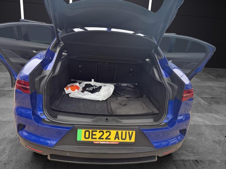 With only one previous owner, this 2022 Jaguar I-PACE 400 HSE Black is a superb example of a premium electric SUV. The HSE Black trim adds a touch of sporty sophistication to this four-wheel-drive vehicle. Enjoy seamless connectivity with Bluetooth and Apple CarPlay, while the keyless entry system offers enhanced convenience. The 2-zone climate control ensures optimal comfort for both driver and passengers. The heated 40-20-40 folding rear seats with a centre armrest provide flexibility and cosiness for those in the back.The I-PACE boasts rapid acceleration, reaching 0-60mph in just 4.5 seconds, demonstrating its impressive performance capabilities compared to similar vehicles. The 90 kWh battery delivers a maximum range of 277 miles when new, allowing for extended journeys with fewer stops. Charging at home using a 7kW charger takes approximately 12 hours and 36 minutes for a full charge. For quicker top-ups, public charging can take as little as 50 minutes to reach 80%. In addition to its performance and range, the I-PACE offers a large boot space, making it a practical choice for families and those needing ample storage.