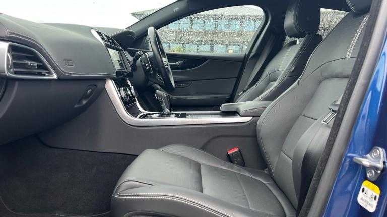 Rare and sought after 300hp all wheell drive XE in top HSE spec and a fantastic colour combo with low mileage. Finished in Bluefire Blue Metallic with Ebony Hide Sports Seats. Great spec HSE P300 with 19 inch Alloys 5 split-spoke Style 5031 Gloss Black finish, Meridian sound system, Apple car play / android auto, Heated leather seats with memory, Front and rear parking sensors with rear view camera, power boot lid, full digital cockpit and keyless entry, All Wheel Drive, Blind spot assist, Daytime running lamps, DAB Radio, Multiway front seats with lumbar support, Heated front windscreen, Heated steering wheel, Infotainment system, Privacy glass, Voice activated controls, Rear spoiler, Matrix headlamps with LED Signature, Adaptive Surface Response (AdSR), Illuminated metal treadplates with Jaguar script. Please call for the full details.