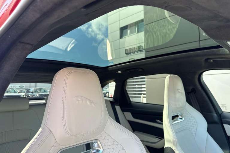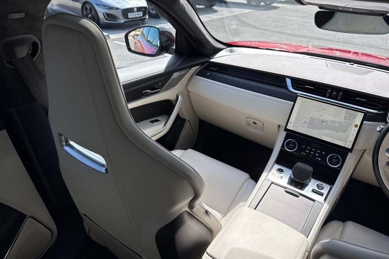 FIRENZE RED EXTERIOR, 21'' GLOSS BLACK ALLOY WHEELS, LIGHT OYSTER PERFORATED WINDSOR LEATHER PERFORMANCE SEATS INTERIOR, SECURE TRACKER PRO (SUBSCRIPTION REQUIRED), FIXED PANORAMIC ROOF, BLACK EXTERIOR PACK, BLACK GLOSS ROOF RAILS, PRIVACY GLASS- TINTED GLASS, REAR PARKING CAMERA, FRONT & REAR PARKING AID, MERIDIAN SOUND SYSTEM, DAB RADIO WITH APPLE CARPLAY & ANDROID AUTO, AMAZON ALEXA, SATELLITE NAVIGATION, 11.4'' TOUCHSCREEN DISPLAY, WIRELESS DEVICE CHARGING, POWERED/HEATED/COOLED FRONT SEATS WITH LUMBAR SUPPORT & MEMORY FUNCTION, BLIND SPOT ASSIST, LANE KEEP ASSIST & UPCOMING TRAFFIC, REAR PROTECTION ASSIST, REVERSE TRAFFIC DETECTION AUTOBRAKE, TRAFFIC SIGN RECOGNITION & ADAPTIVE SPEED LIMITER, ADAPTIVE CRUISE CONTROL WITH STEERING ASSIST, ELECTRICALLY ADJUSTABLE STEERING COLUMN, POWERED/HEATED/FOLDING DOOR MIRRORS, POWERED TAILGATE/BOOTLID, HEATED STEERING WHEEL, HEATED WINDSCREEN, HEATED WASHER JETS, TYRE REPAIR SYSTEM, TYRE PRESSURE MONITORING SYSTEM, ALL WHEEL DRIVE, LED HEADLIGHTS WITH SIGNATURE DRL, AUTO HIGH BEAM ASSIST, DAYTIME RUNNING LAMPS, INTERIOR MIRROR AUTO DIMMING, VOICE ACTIVATED CONTROLS, TWO ZONE CLIMATE CONTROL AND MUCH MORE. Harwoods Jaguar Land Rover Brighton are delighted to offer this Jaguar F-PACE DIESEL ESTATE 2.0 D200 R-Dynamic HSE Black 5dr Auto AWD.This car comes with the balance of the manufacturers warranty until 11/2026.If this isn't the right car for you our Group stock has specification to include Sunroof, Leather, Heated Seats, Apple Car Play, Heated Steering Wheel, Reverse Camera, Rear Entertainment, Towbar, 360-degree camera, Meridian Audio, Panoramic Sun Roof, Tow Bar, Black Pack, Air Suspension, Apple Carplay, Adaptive Cruise, Massage Seats, Refrigerator, AWD, Head up Display, Portfolio, Autobiography, SVR, R Dynamic, R Sport, Sportbrake, Convertible, Coupe, V8, LWB. Other colour options including Black, Blue, Green, Silver, White, Red, Grey & SVO. Interior options of Ebony, Black, Ivory, White, Tan, Cream, Oyster, Pimento, & Euro 6 ULEZ compliant drive trains.