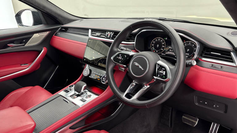 Sliding Panoramic Roof,21in Alloy Wheels - Style 5105 - Gloss Black,Black Pack,Perforated Windsor Leather Sport Seats - Mars Red with Ebony-Mars Red Interior,Charcoal,14 Way Memory Heated Front Seats,Adaptive Cruise Control,Gloss Black Roof Rails,Red Brake Calipers,Rear Spoiler,Ambient and Footwell Lightning,Black Pack,Powered Upper Tailgate,Paddle Shift Steering Wheel,Ebony Interior,Santorini Black,Panoramic Roof,Start / Stop,Sat Nav,11.4"" Infotainment Screen,Continuous Variable Damping,R-Dynamic Styling Package,Swiping Directional Indicators,Wireless Charger,Privacy Glass,Front And Rear Parking Aid,AutoBrake,Connected Navigation Data,Android Auto,Apple Carplay,4 Way Seat Lumbar,Connected Nav Pro,Rear Protection Assist,Reverse Traffic Detection,Forward Facing Camera,Blind Spot Assist,Rear View Camera-Fixed,Driver Drowiness Monitoring,Traffic Sign Recognition with Speed Limiter,Passive Keyless Entry/Start,LED Premium Headlamps,Auto Dip High Beam Assist,SOS / Assistance Call,Navigation System,Digital Audio Broadcast Radio,In Control Remote,Double Locking Power Lock Latch,Heated Washer Jet,Heated Windscreen,Ebony Headliner,Hi-Line Audio System,Heated Steering Wheel,Heated/Cooled Front Seats,Advanced Emergency Braking (City,Pedestrian,Cyclist & Junctions)